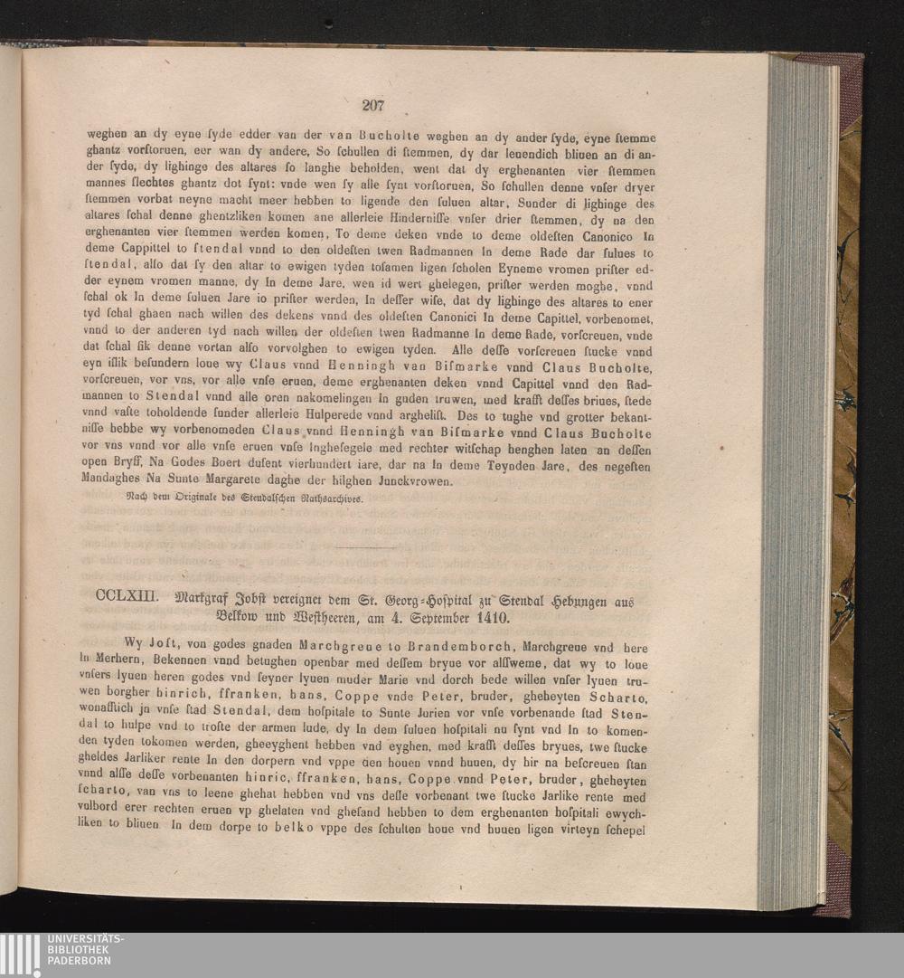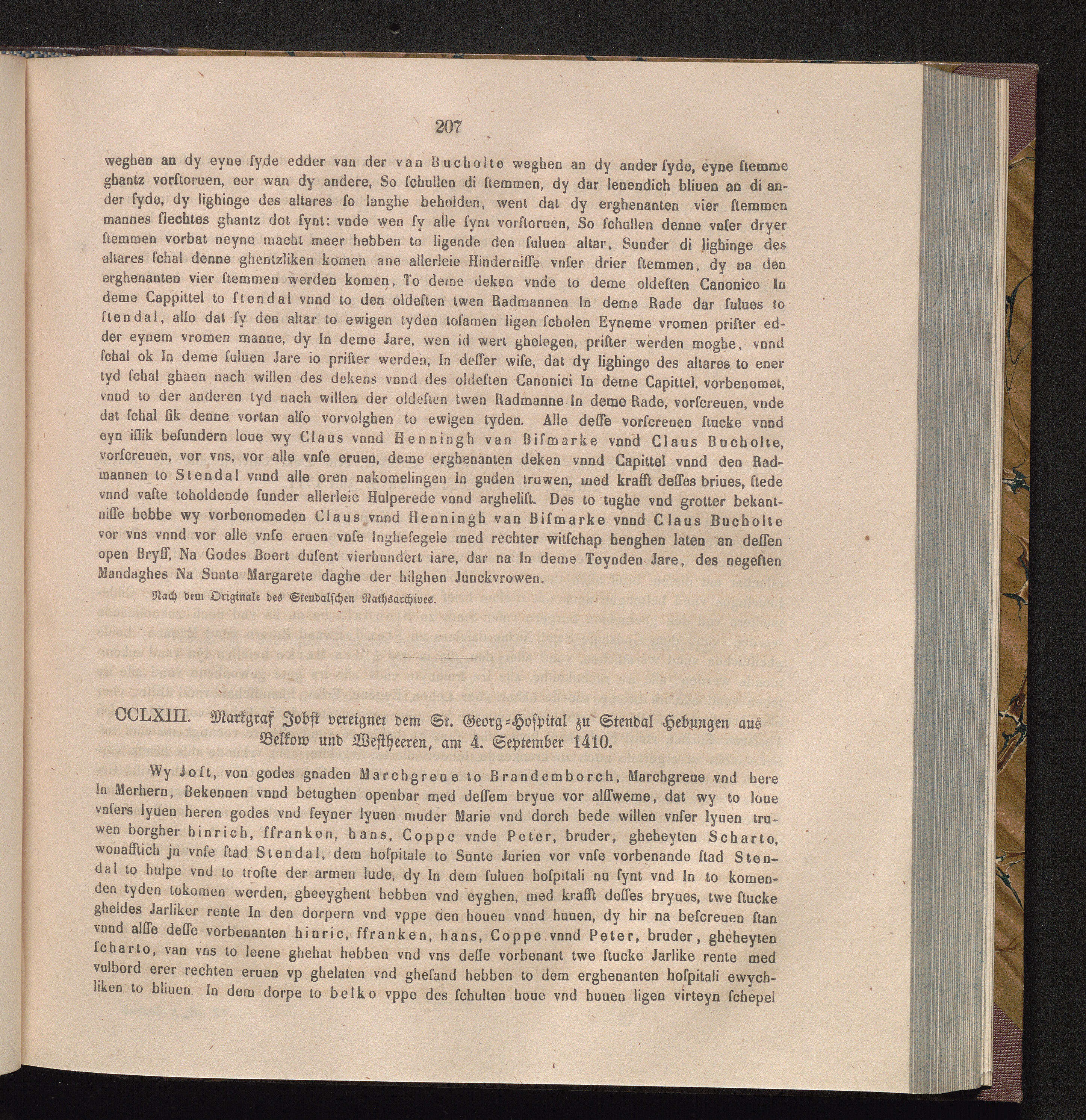 CCLXIII. Markgraf Jobst vereignet dem St. Georg-Hospital zu Stendal Hebungen aus[...]
