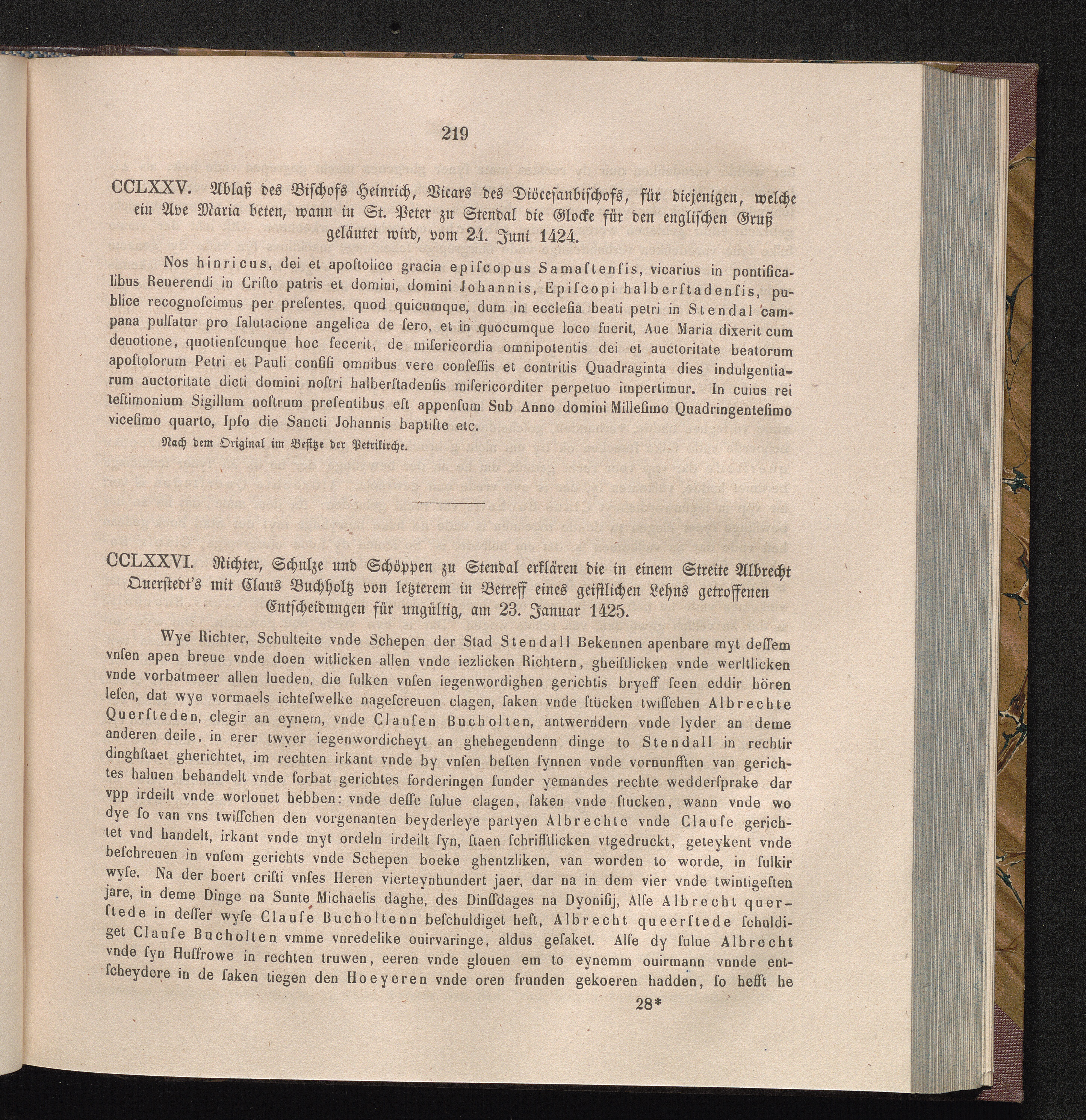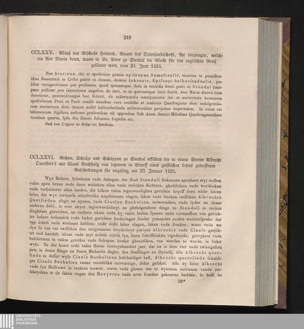 CCLXXVI. Richter, Schulze und Schöppen zu Stendal erklären die in einem Streite Albrecht[...]