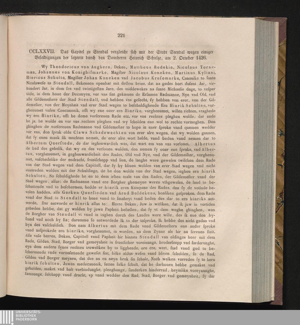 CCLXXVII. Das Capitel zu Stendal vergleicht sich mit der Stadt Stendal wegen einiger[...]