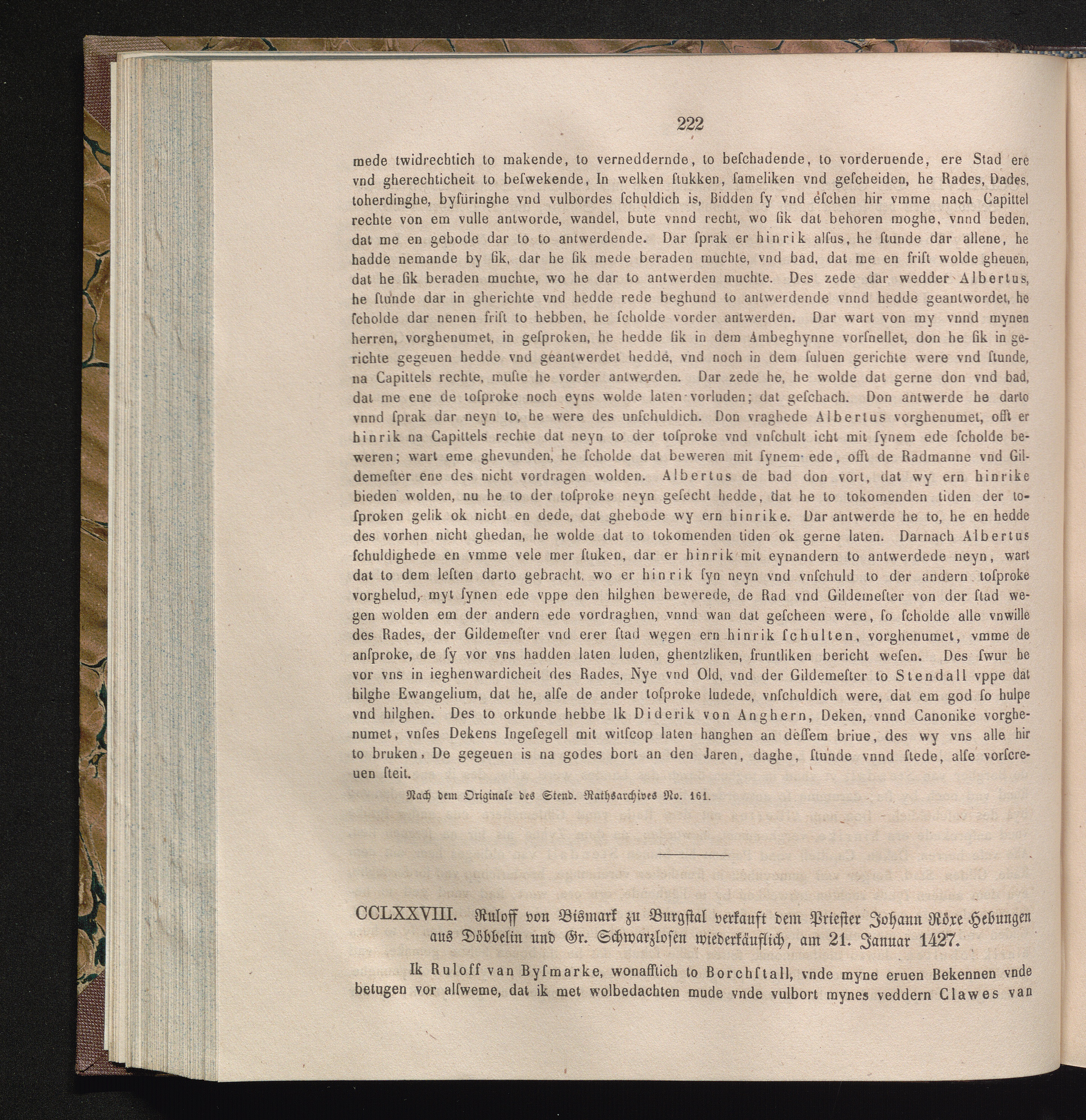 CCLXXVIII. Ruloff von Bismark zu Burgstall verkauft dem Priester Johann Röxe Hebungen[...]