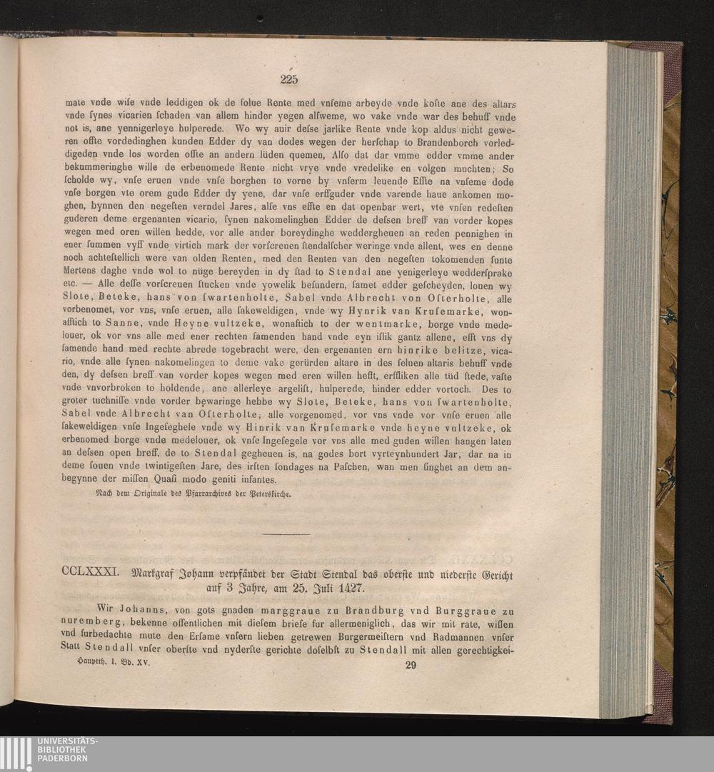 CCLXXXI. Markgraf Johann verpfändet der Stadt Stendal das oberste und niederste Gericht[...]