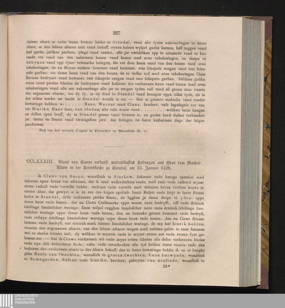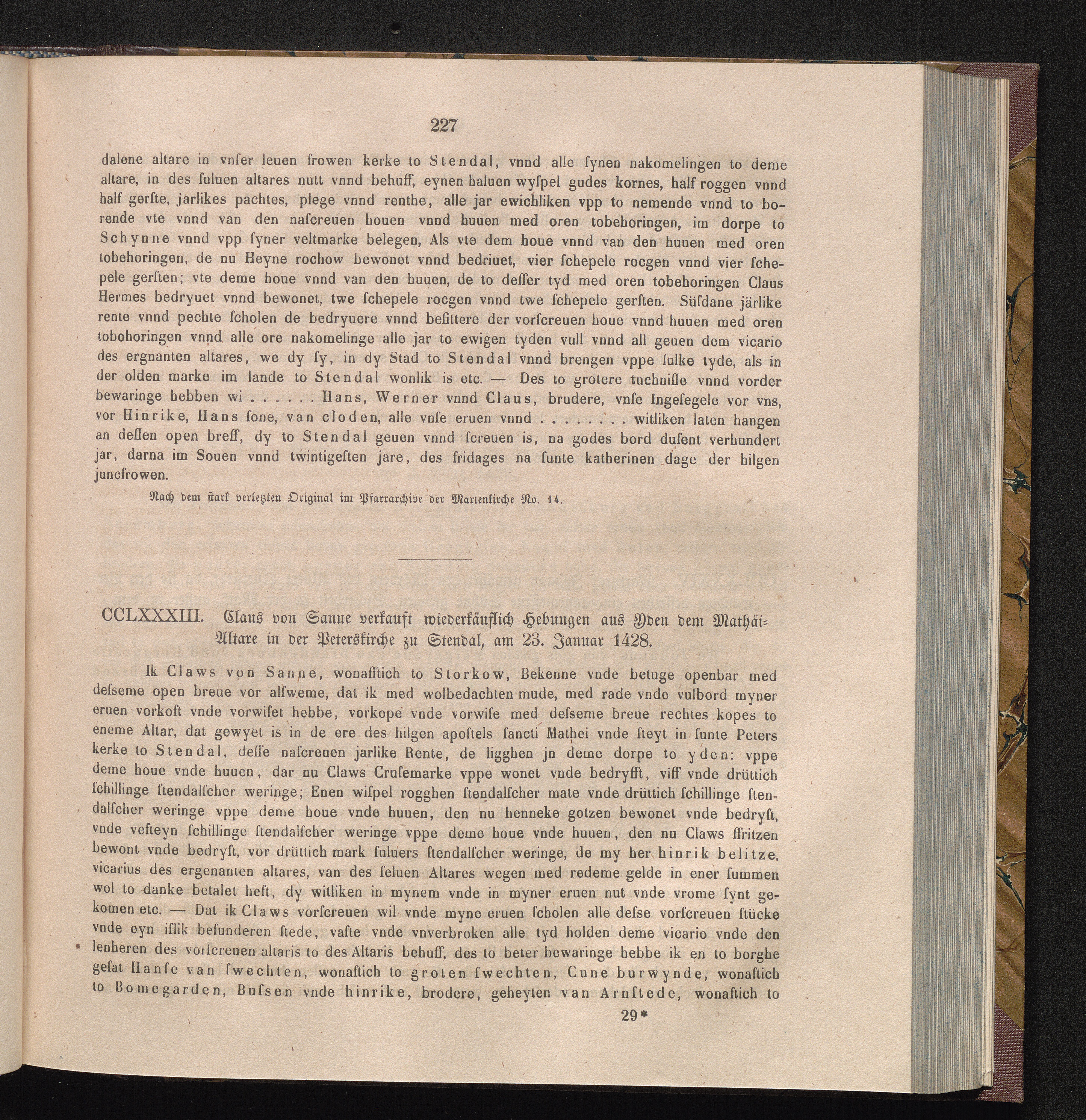 CCLXXXIII. Claus von Sanne verkauft wiederkäuflich Hebungen aus Yden dem Mathäi-Altare[...]