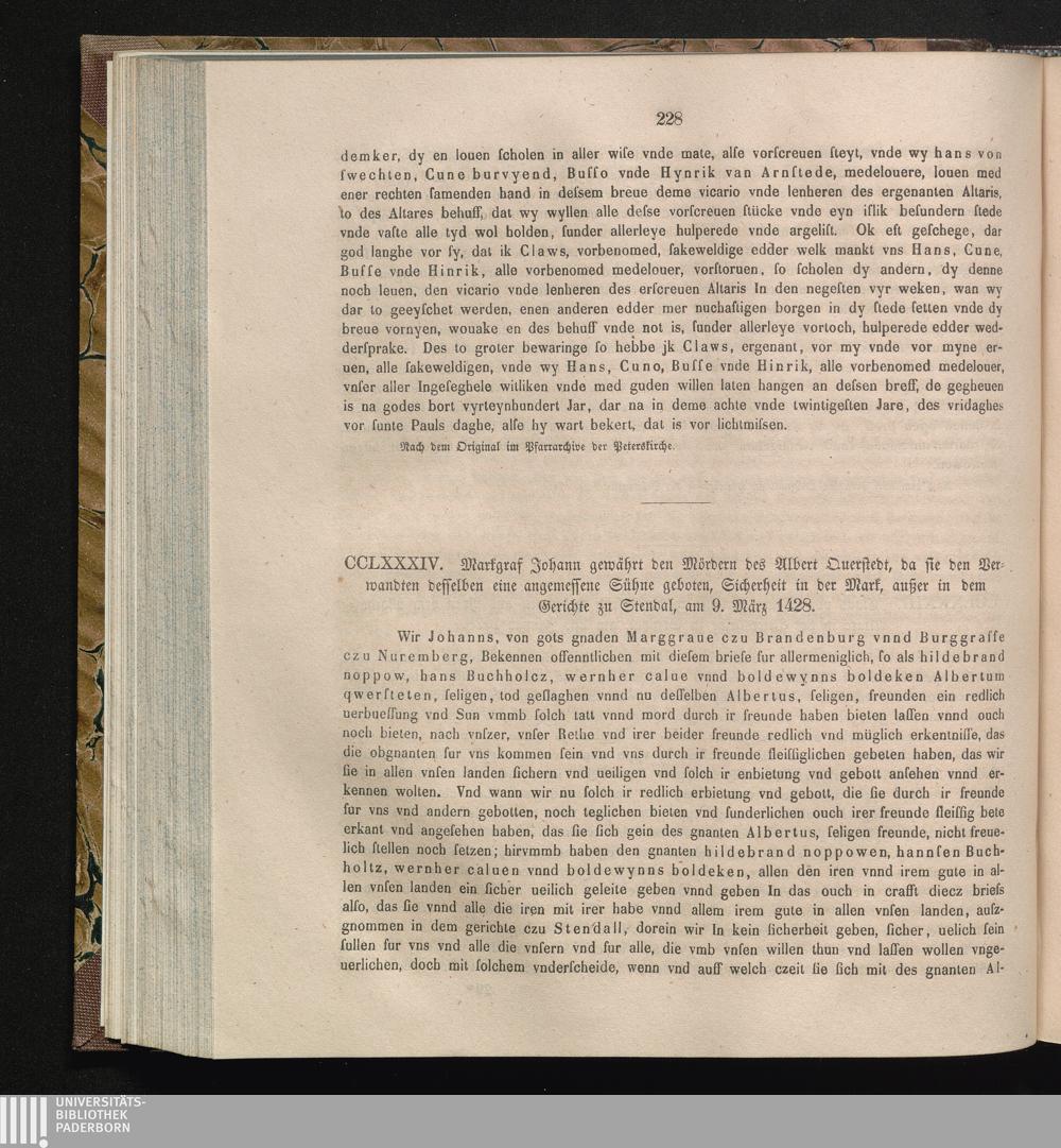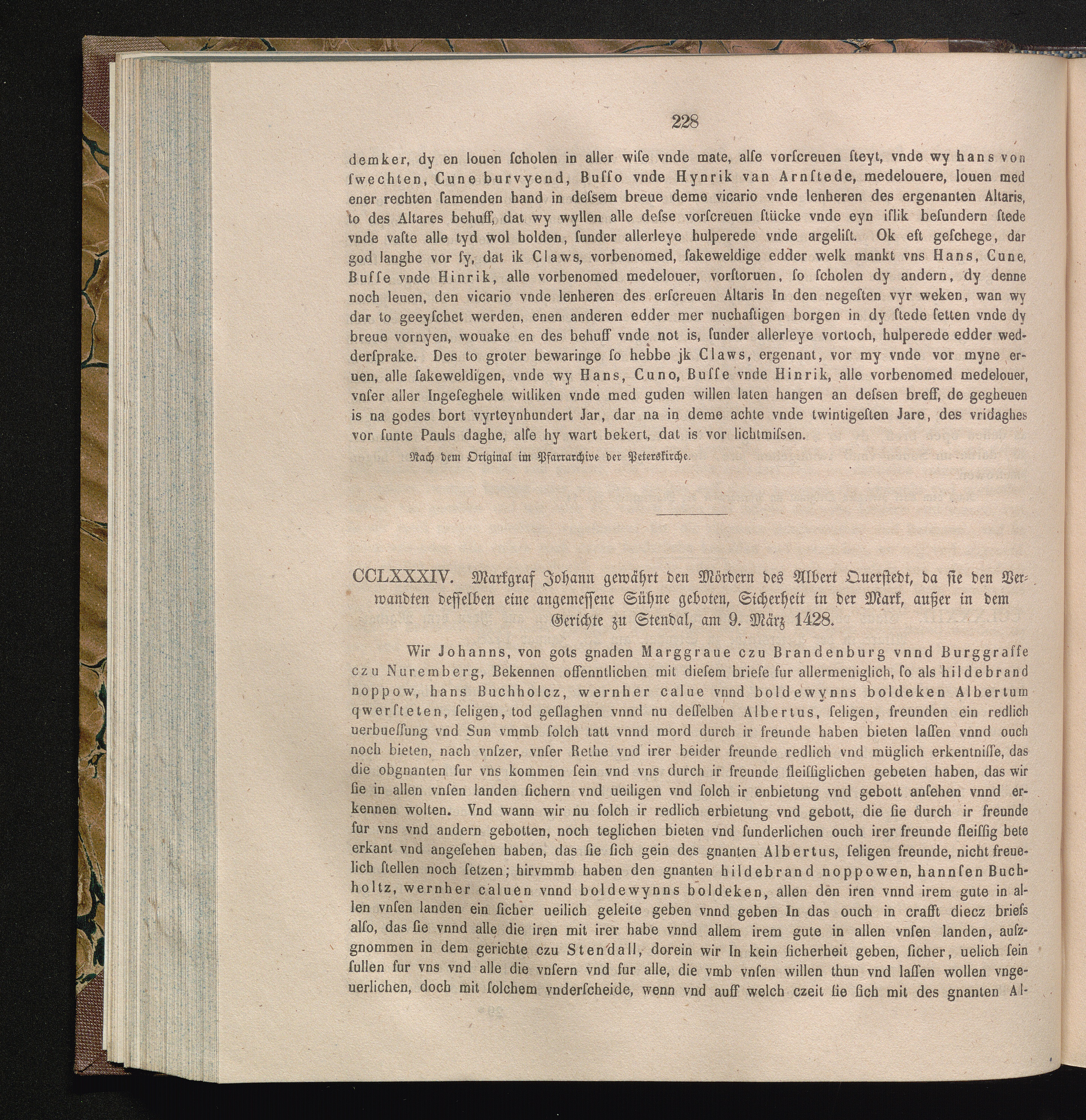 CCLXXXIV. Markgraf Johann gewährt den Mördern des Albert Querstedt, da sie den Verwandten[...]