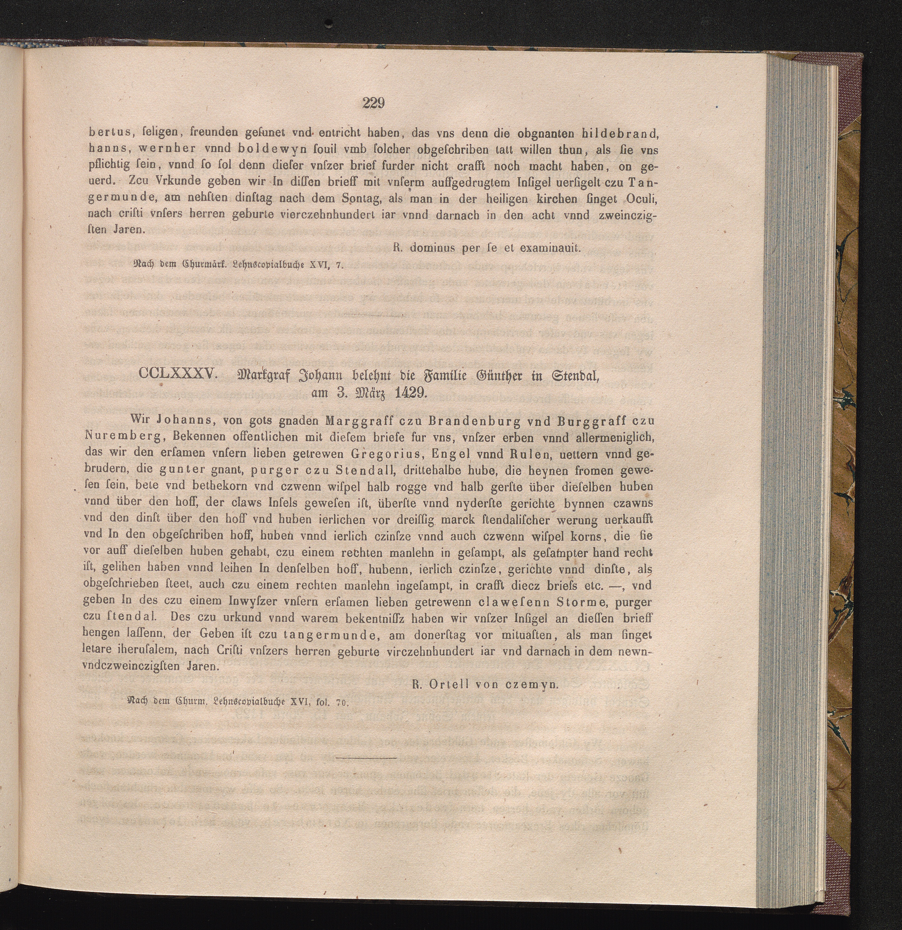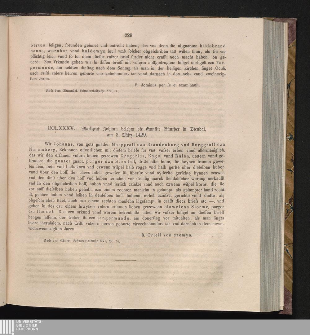 CCLXXXV. Markgraf Johann belehnt die Familie Günther in Stendal, am 3. März 1429[...]