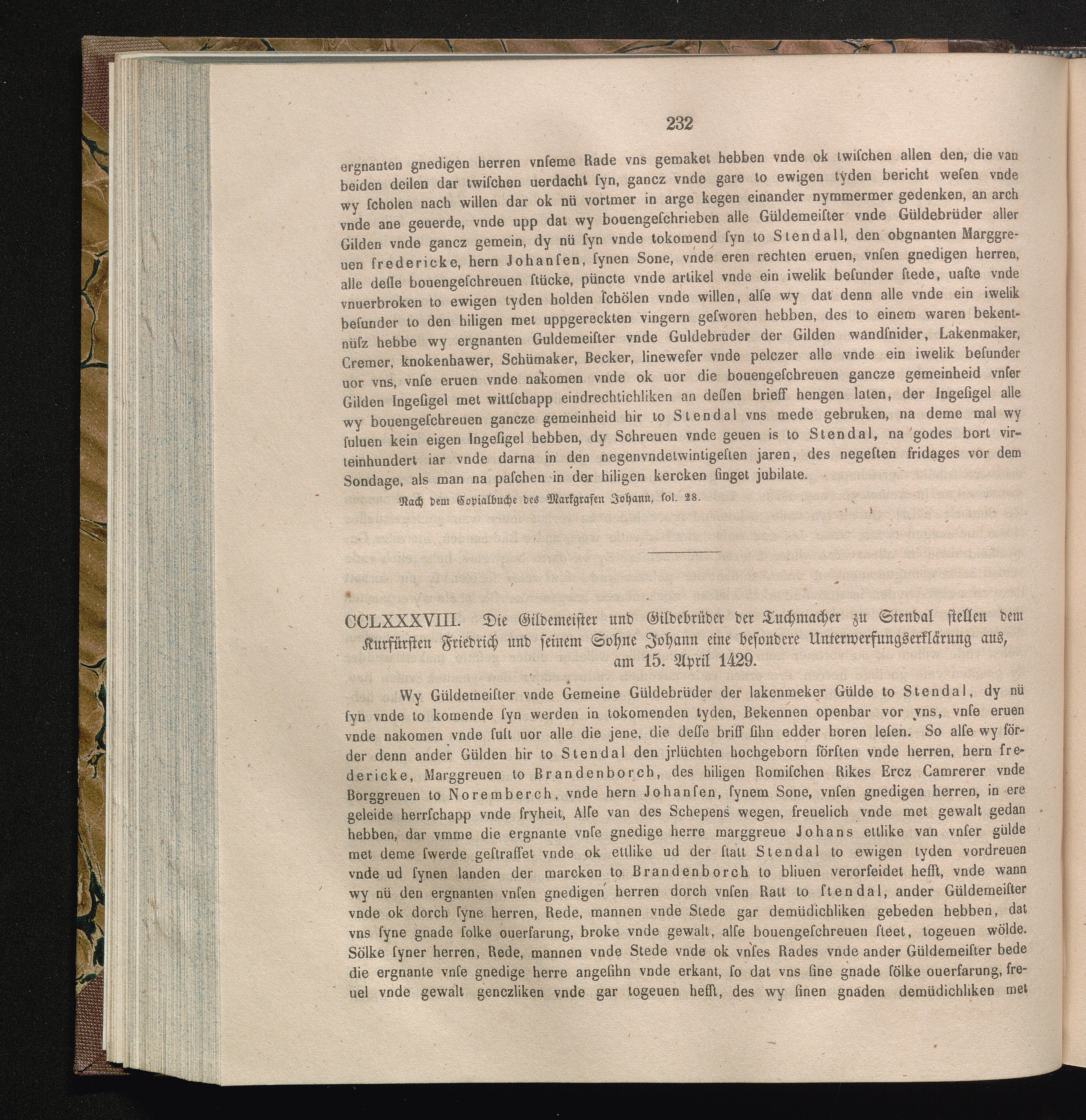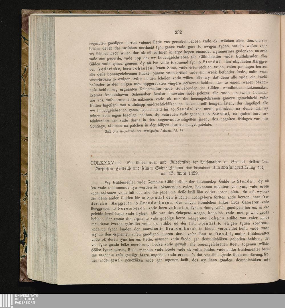 CCLXXXVII. Die Gildemeister und Gildebrüder der Tuchmacher zu Stendal stellen dem[...]