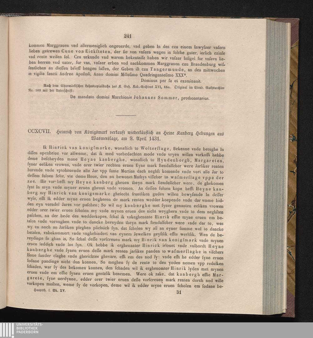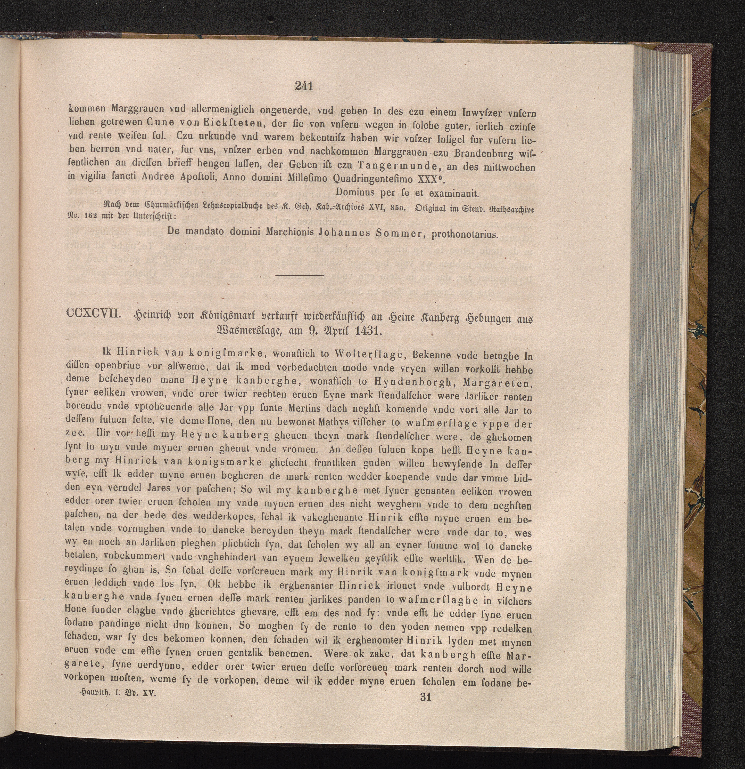 CCXCVII. Heinrich von Königsmark verkauft wiederkäuflich an Heine Kanberg Hebungen[...]