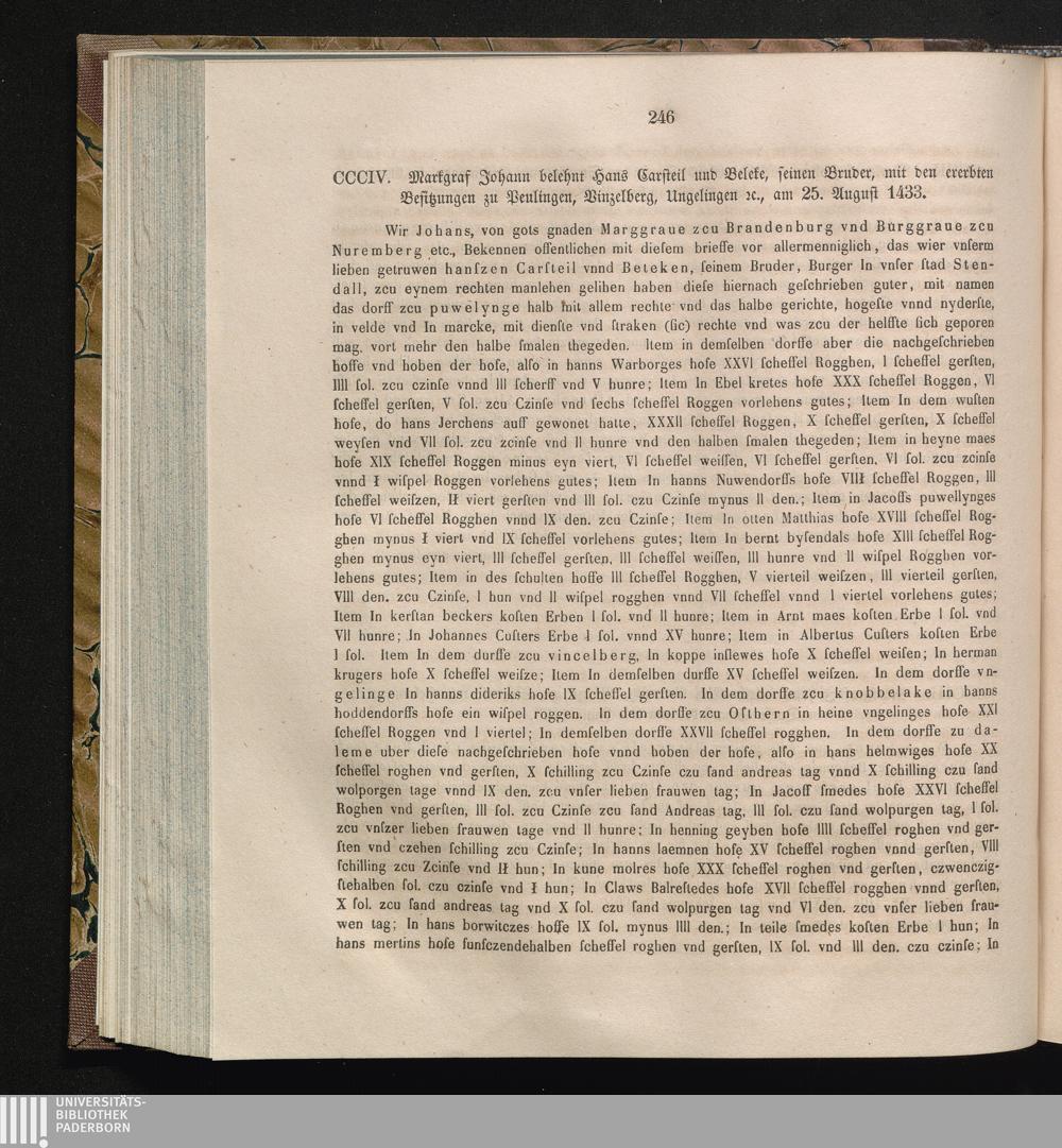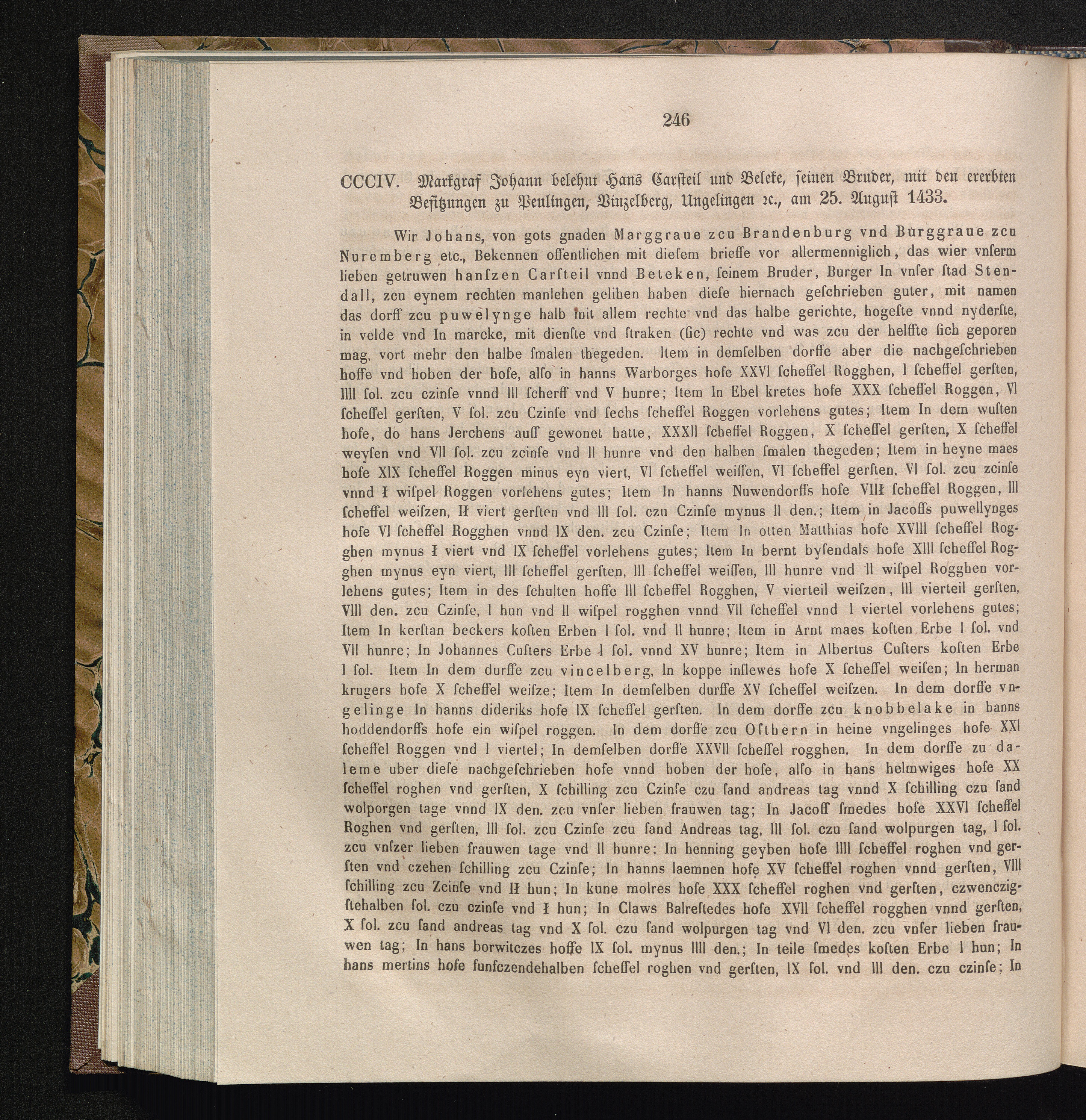 CCCIV. Markgraf Johann belehnt Hans Carsteil und Beleke, seinen Bruder, mit den ererbten[...]