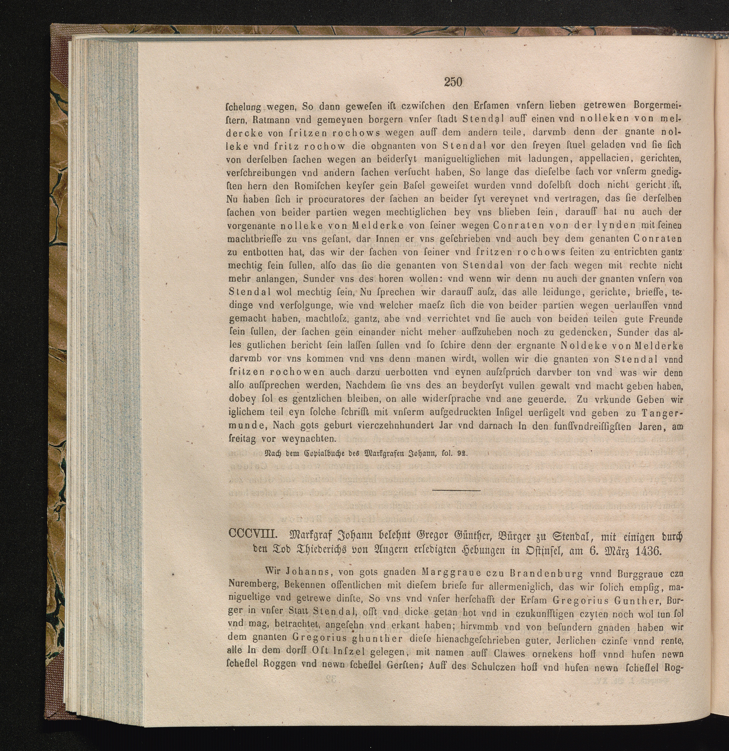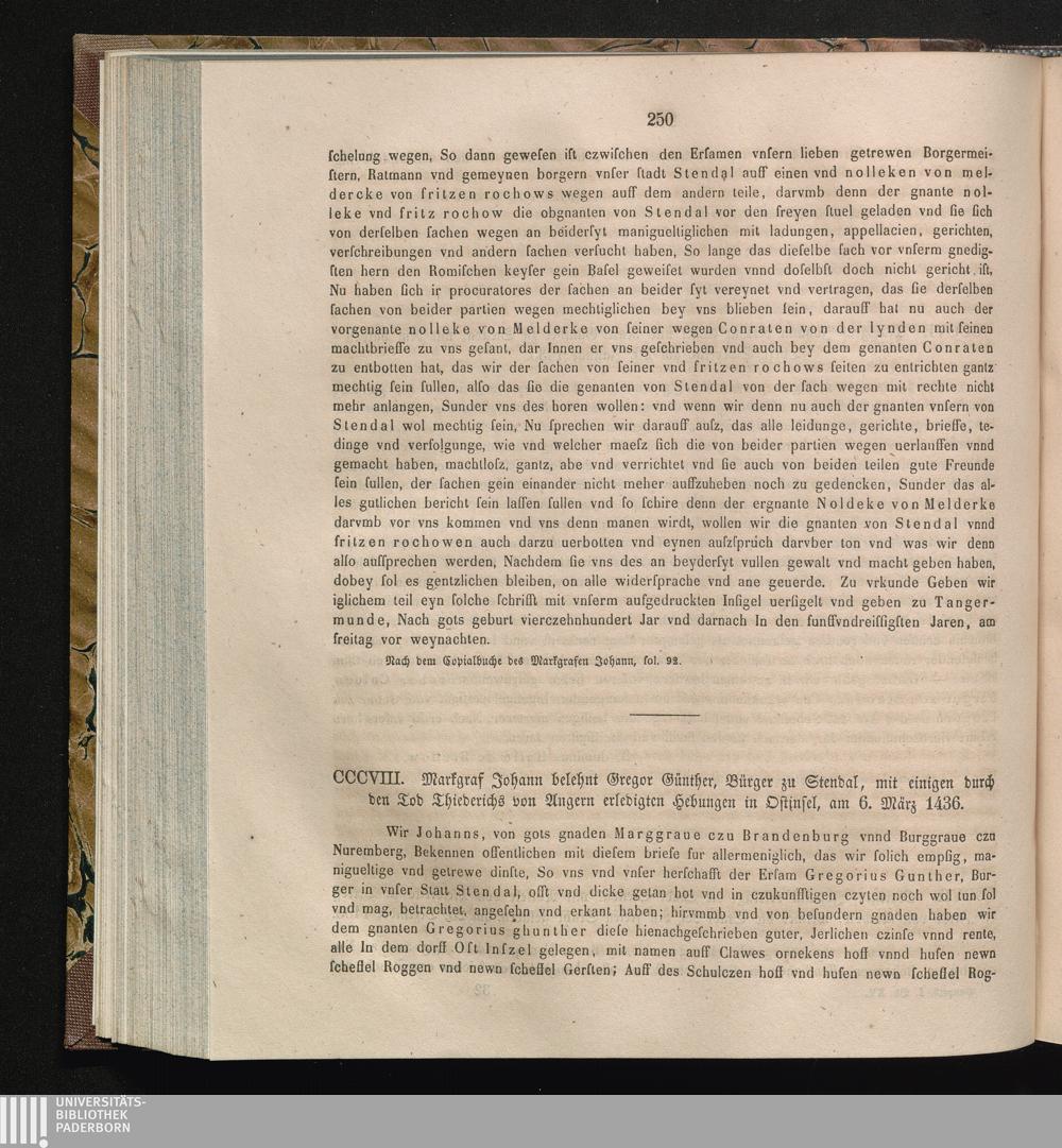CCCVIII. Markgraf Johann belehnt Gregor Günther, Bürger zu Stendal, mit einigen durch[...]