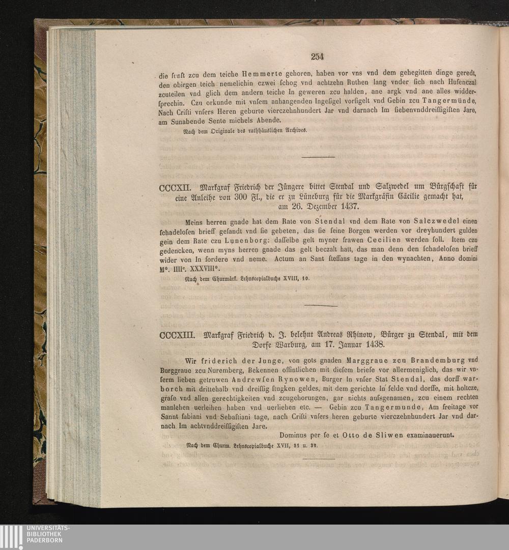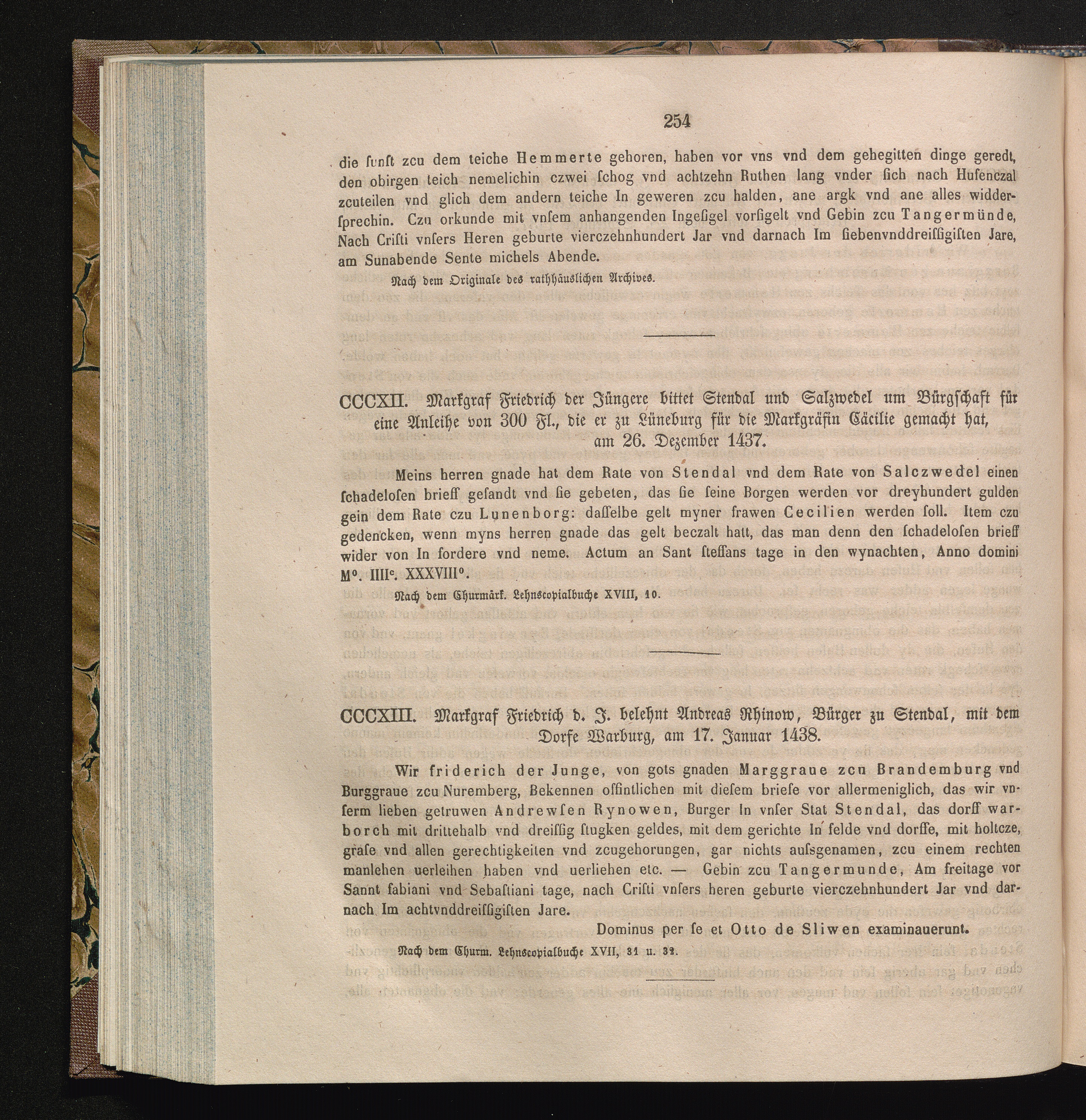 CCCXIII. Markgraf Friedrich d. J. belehnt Andreas Rhinow, Bürger zu Stendal, mit[...]