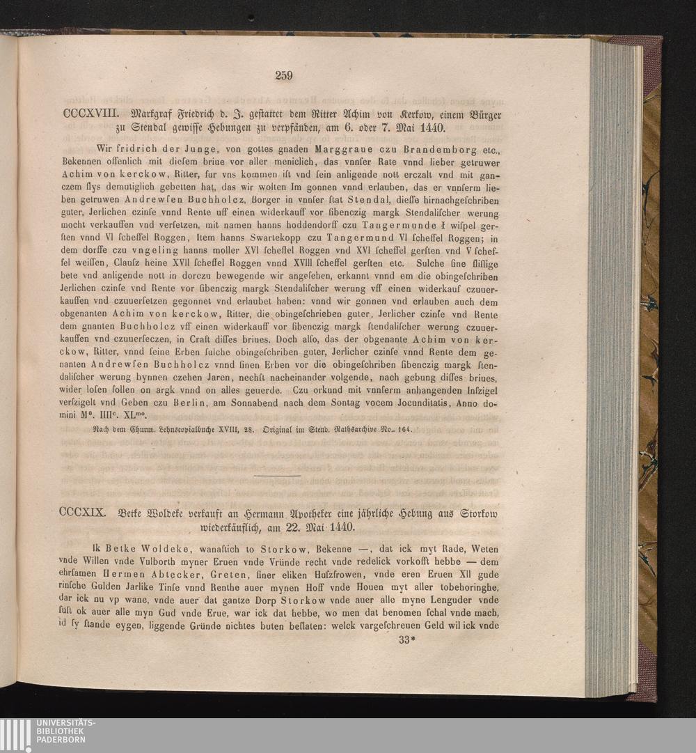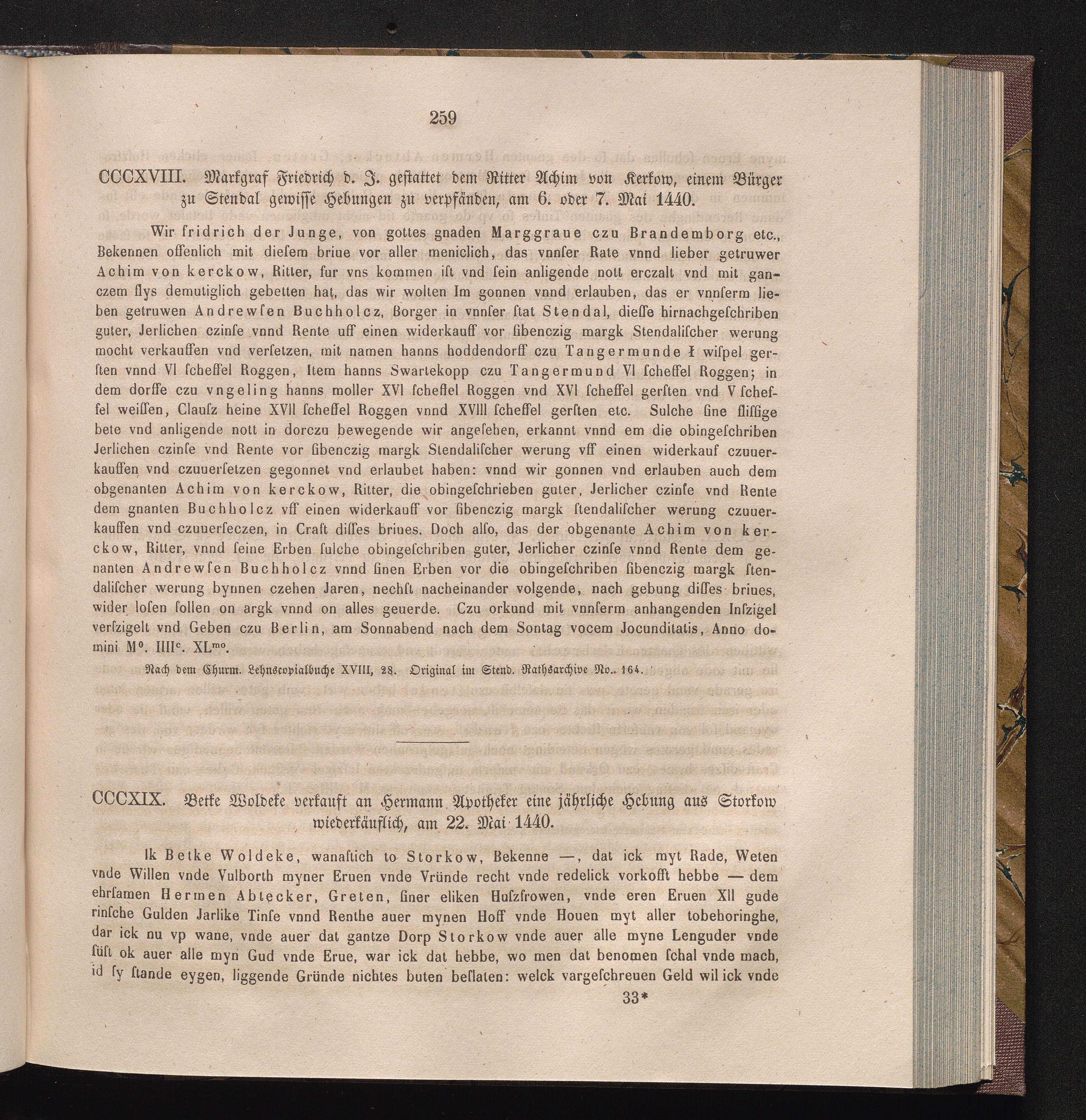 CCCXIX. Beike Woldeke verkauft an Hermann Apotheker eine jährliche Hebung aus Storkow[...]