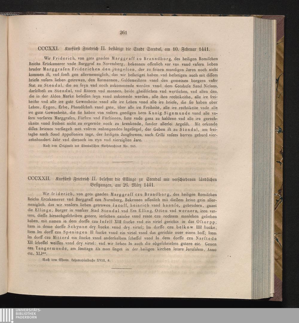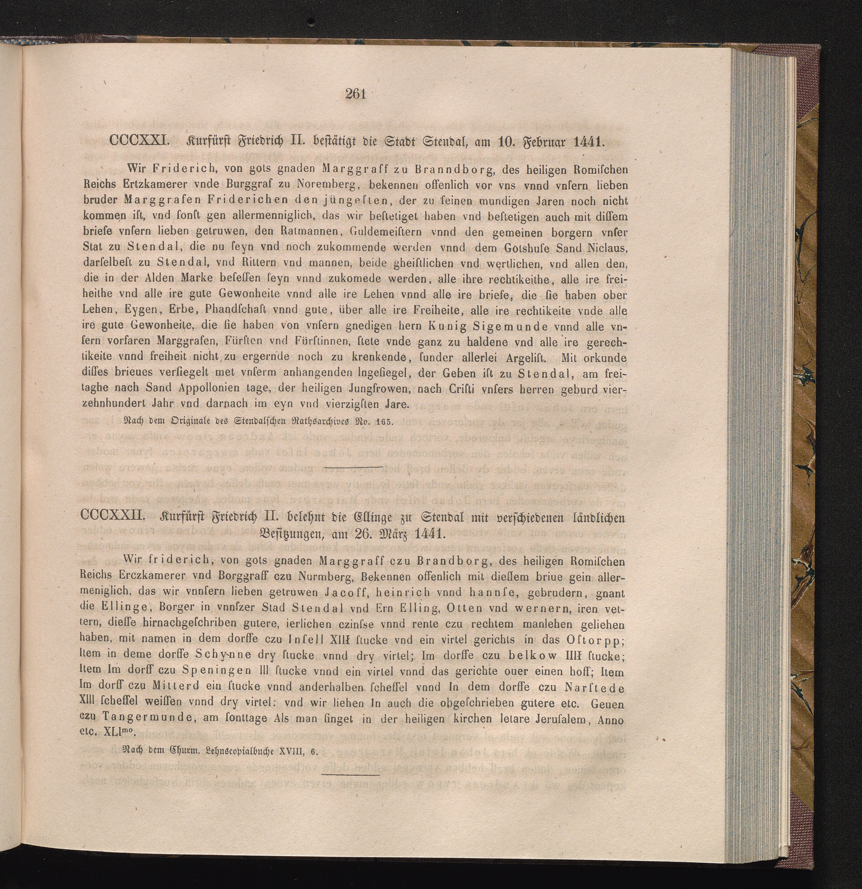 CCCXXII. Kurfürst Friedrich II. belehnt die Ellinge zu Stendal mit verschiedenen[...]