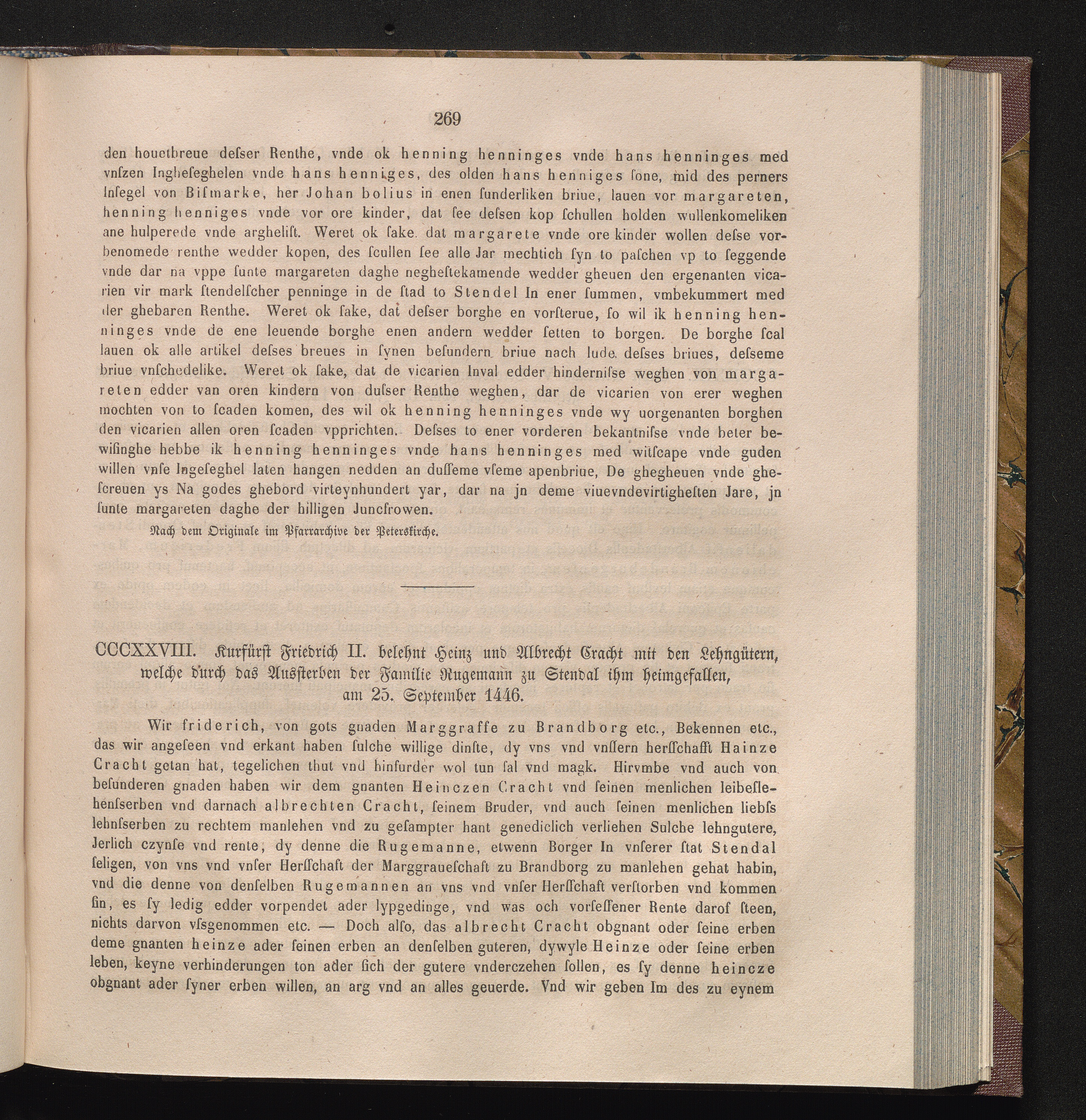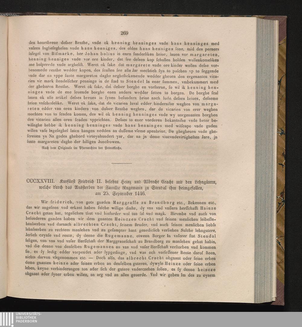 CCCXXVIII. Kurfürst Friedrich II. belehnt Heinz und Albrecht Cracht mit den Lehngütern,[...]