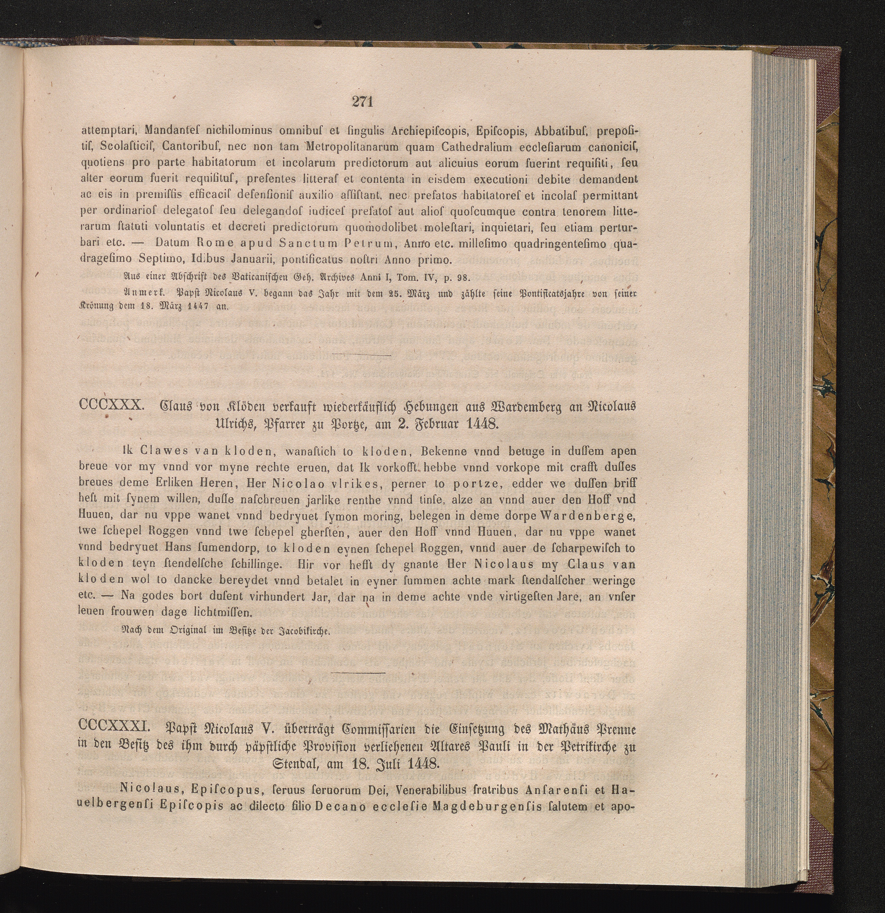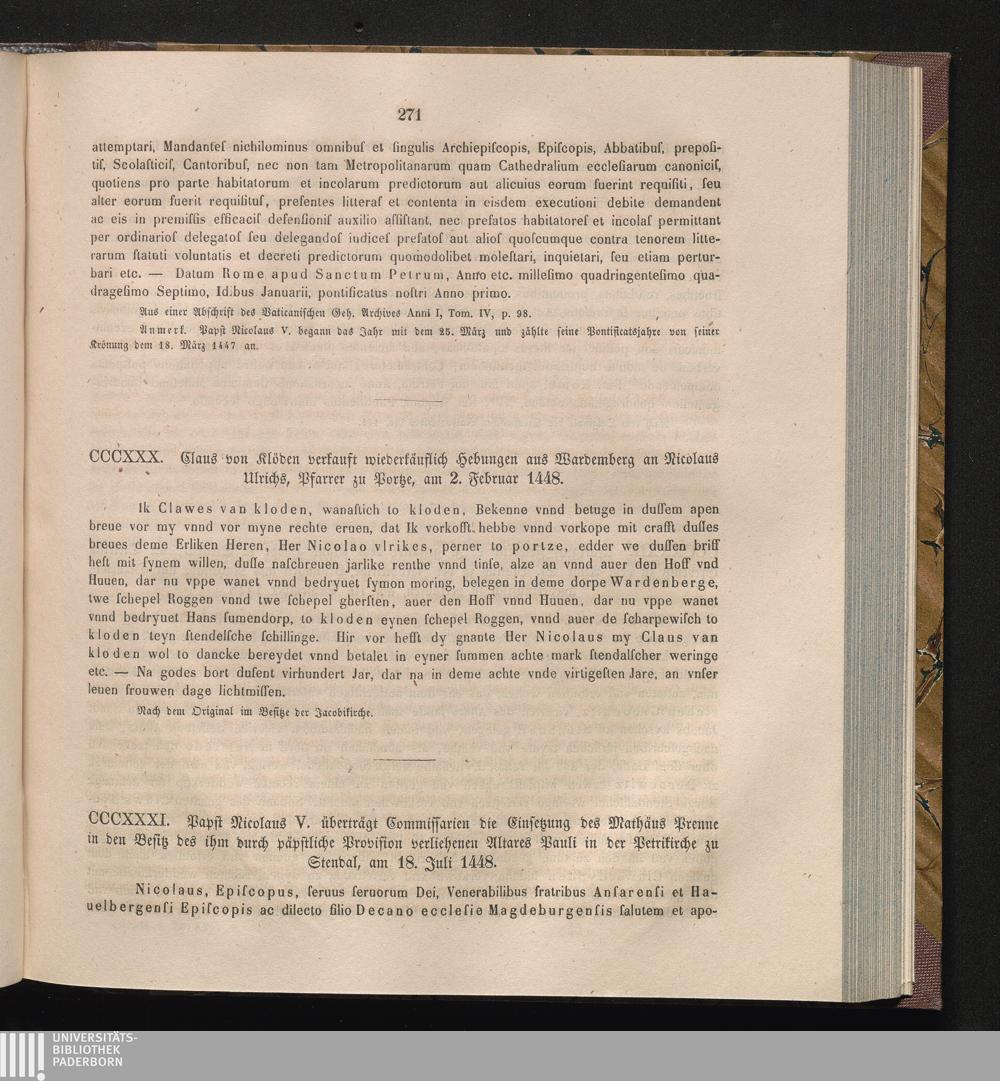 CCCXXXI. Papst Nicolaus V. überträgt Commissarien die Einsetzung des Mathäus Prenne[...]