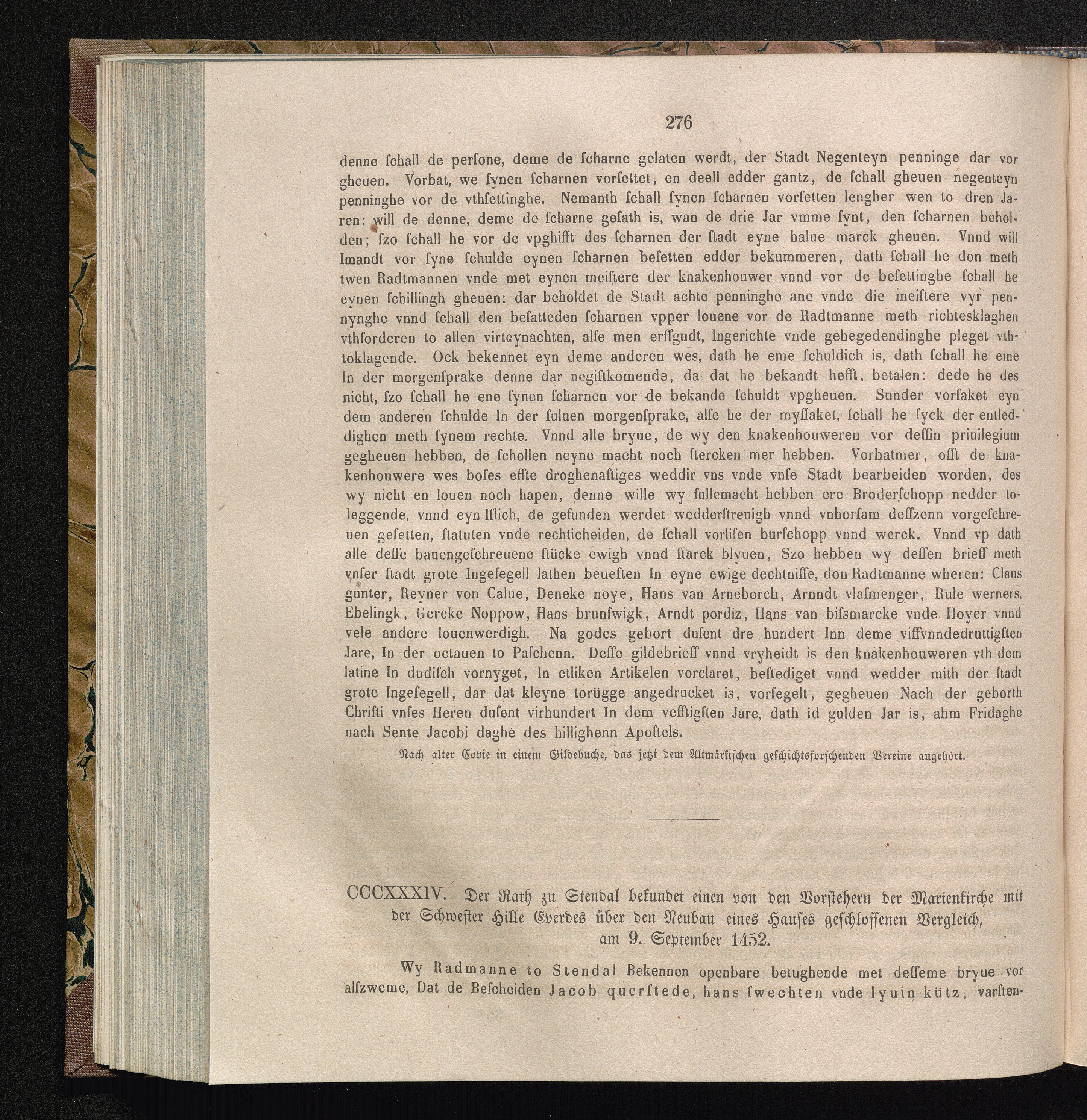 CCCXXXIV. Der Rath zu Stendal bekundet einen von den Vorstehern der Marienkirche[...]
