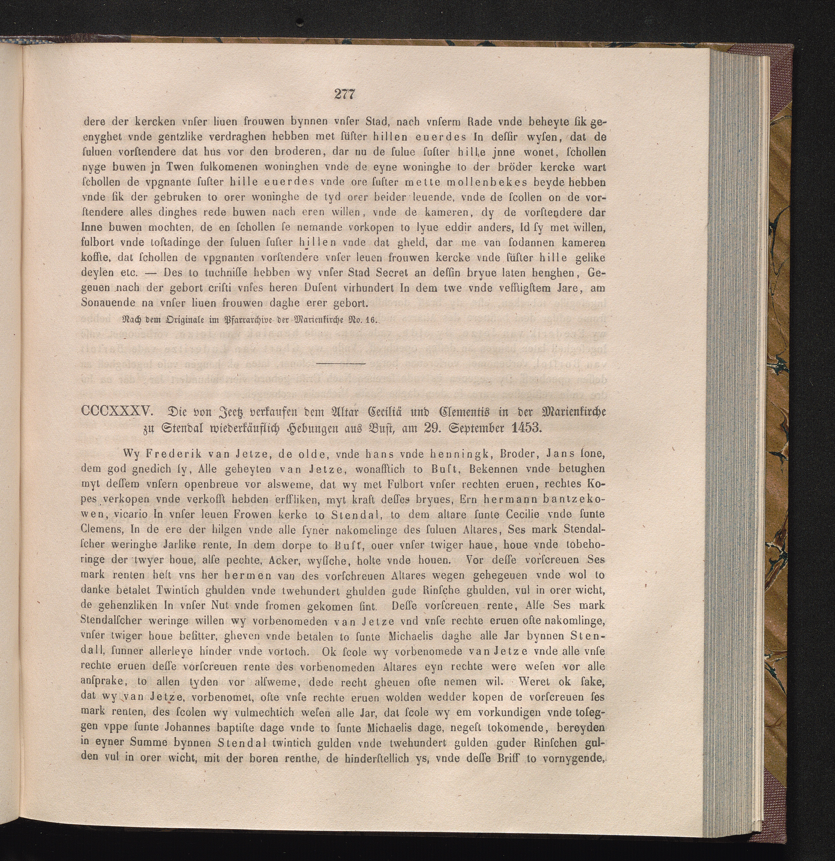 CCCXXXV. Die von Jeetz verkaufen dem Altar Ceciliä und Celementis in der Marienkirche[...]