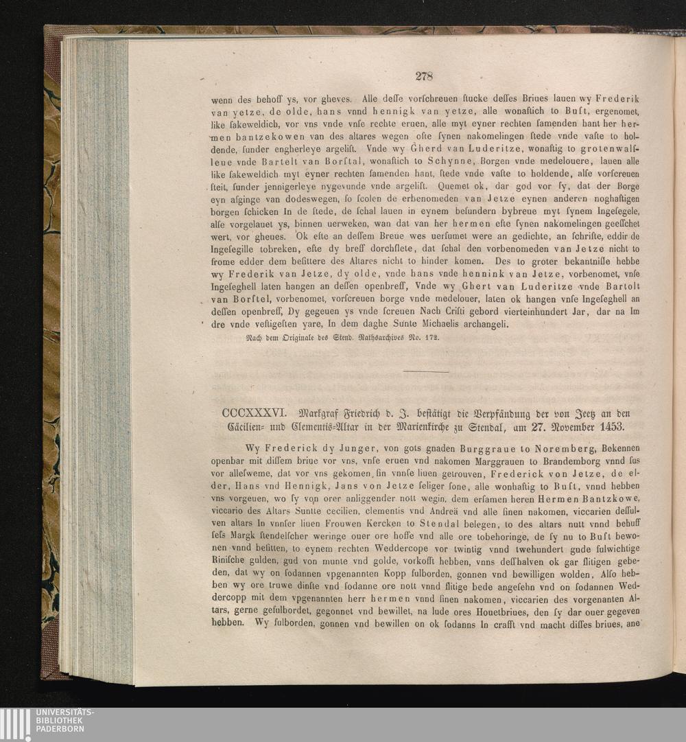 CCCXXXVI. Markgraf Friedrich d. J. bestätigt die Verpfändung der von Jeetz an den[...]