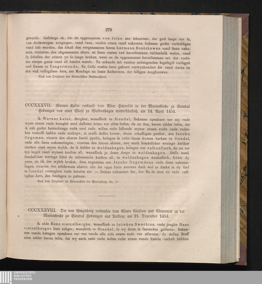 CCCXXXVIII. Die von Vinzelberg verkaufen dem Altare Cäcilien und Clementis in der[...]