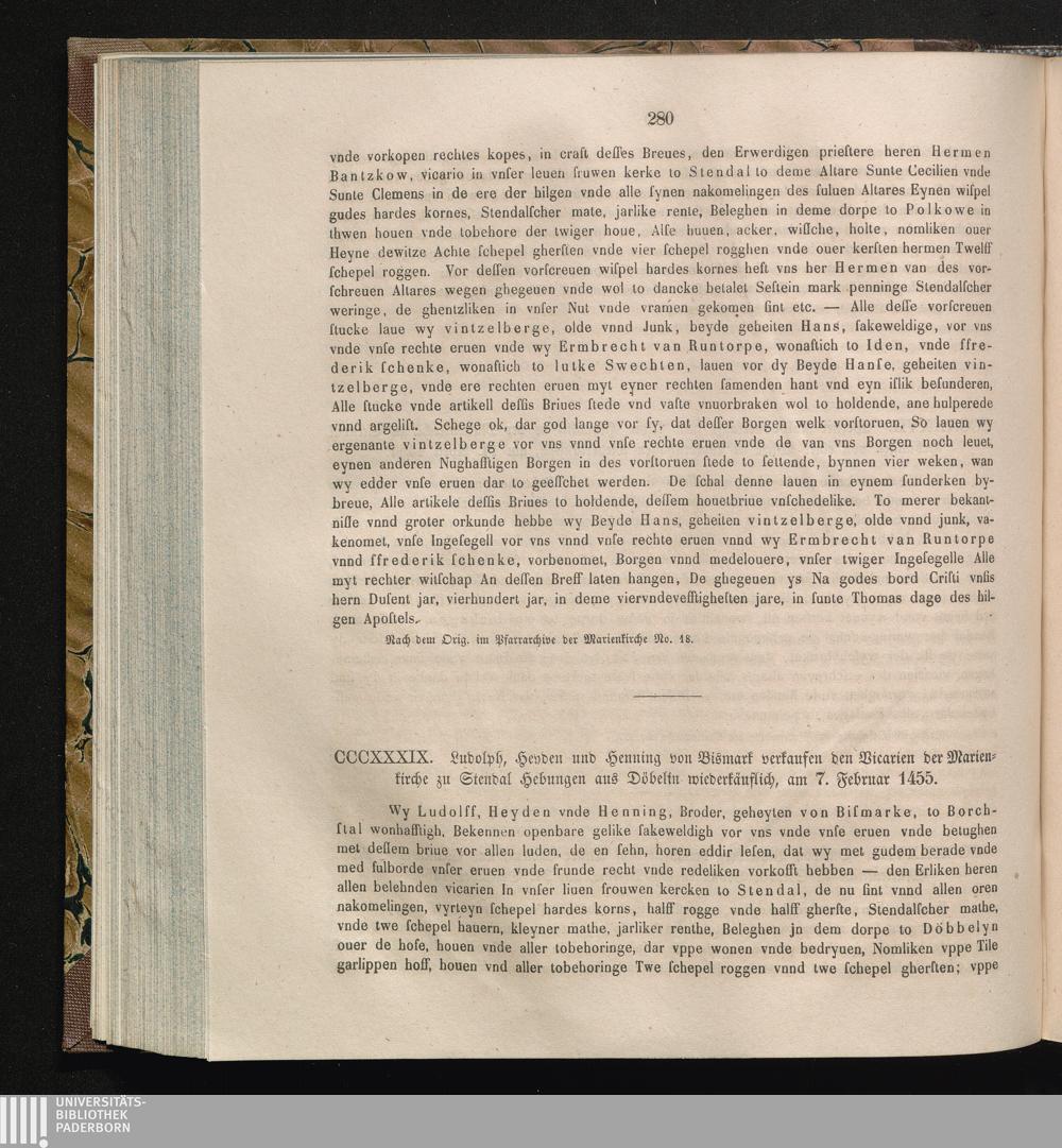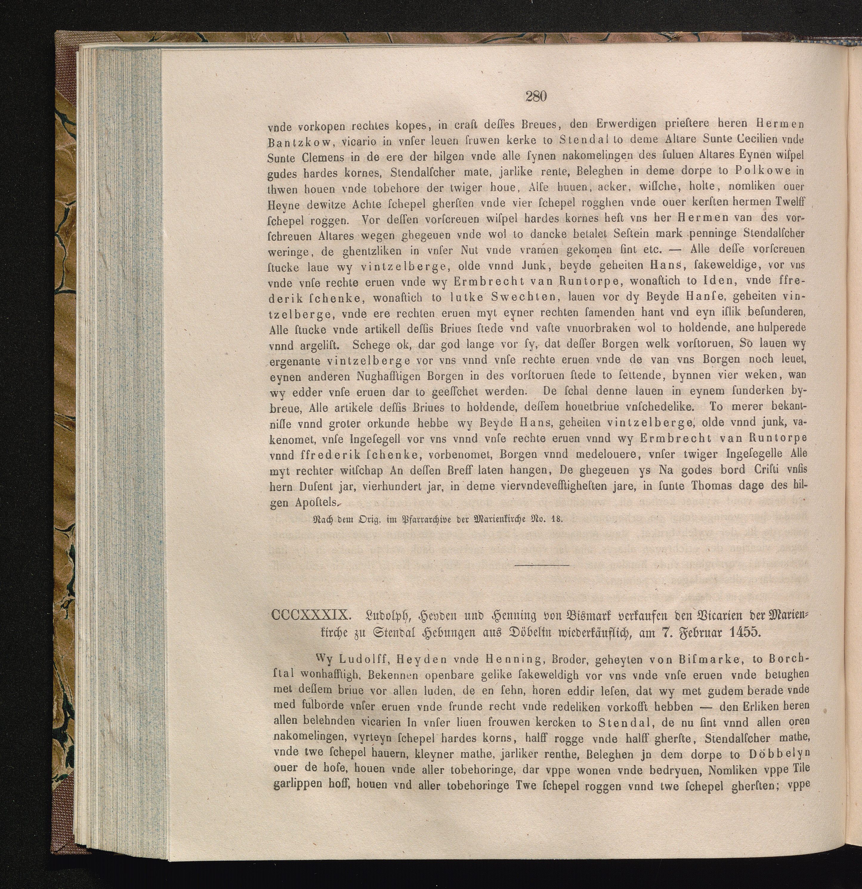 CCCXXXIX. Ludolph, Heyden und Henning von Bismark verkaufen den Vicarien der Marienkirche[...]