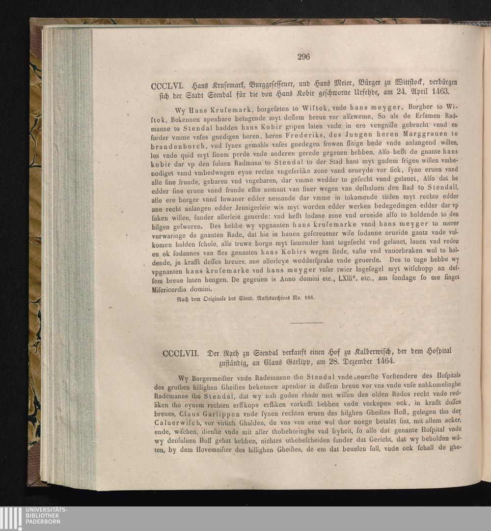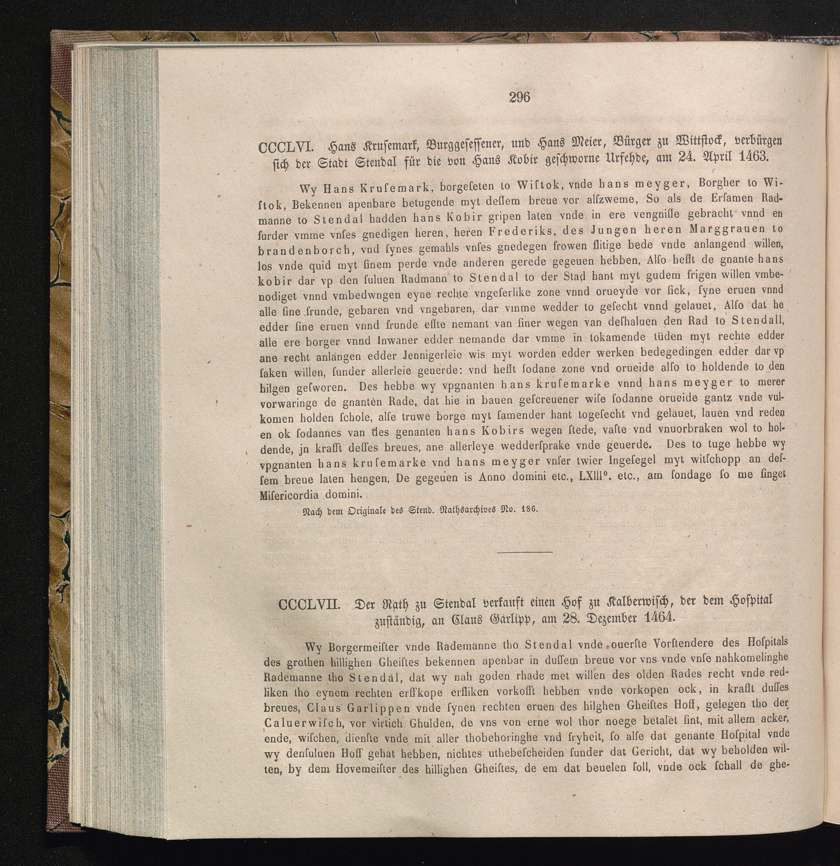 CCLVII. Der Rath zu Stendal verkauft einen Hof zu Kalberwisch, der dem Hospital zuständig,[...]