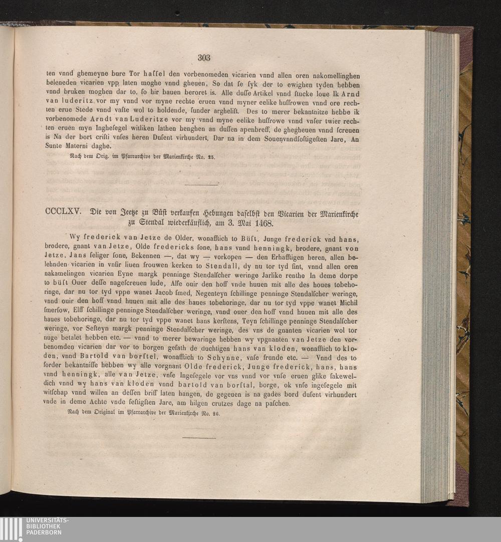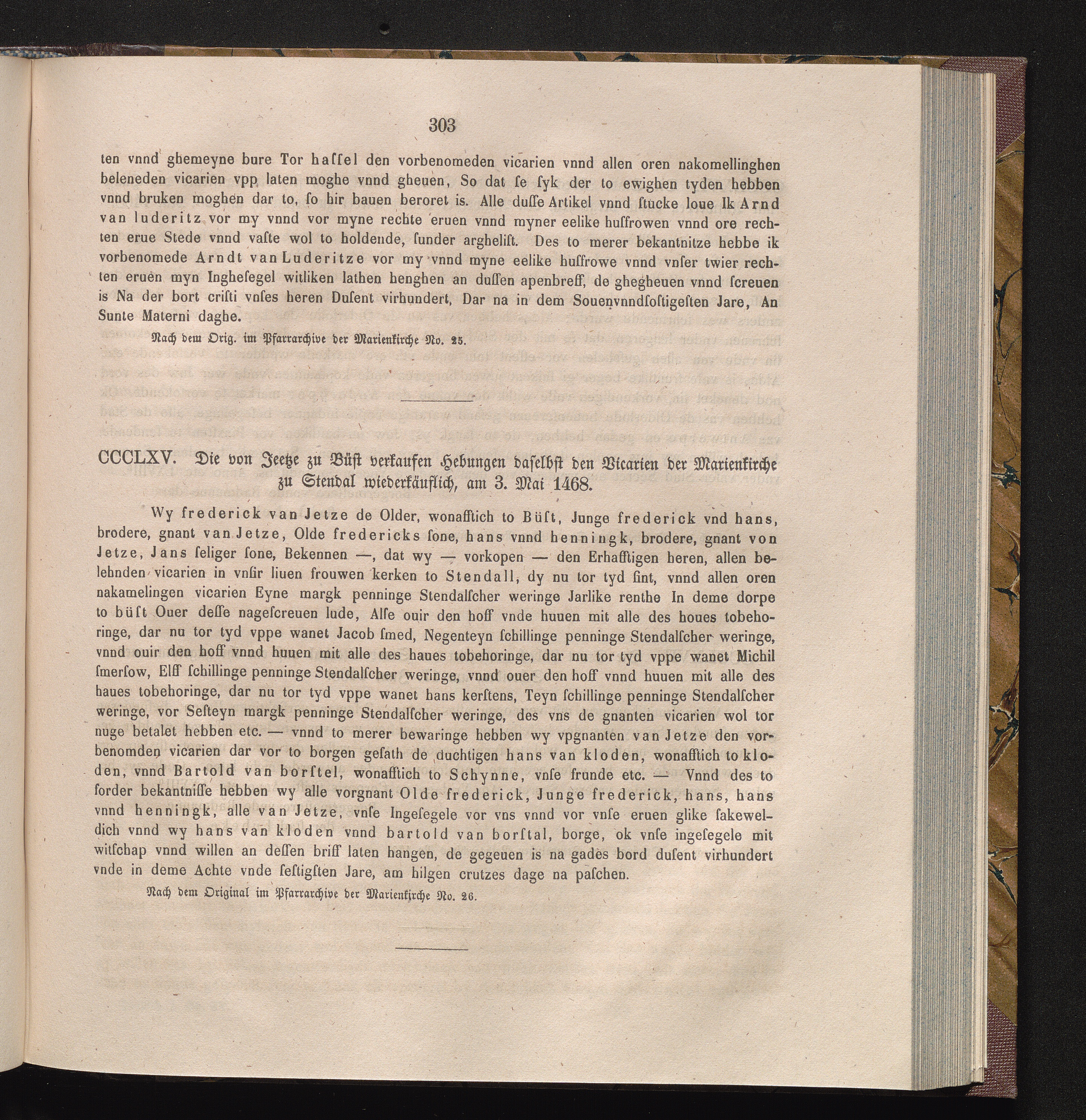 CCCLXV. Die von Jeetze zu Büst verkaufen Hebungen daselbst den Vicarien der Marienkirche[...]