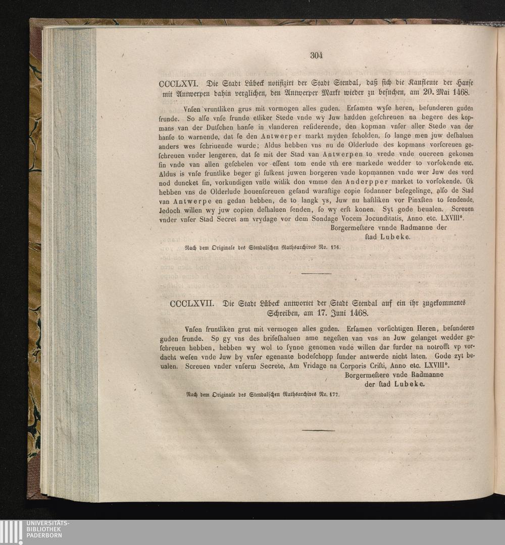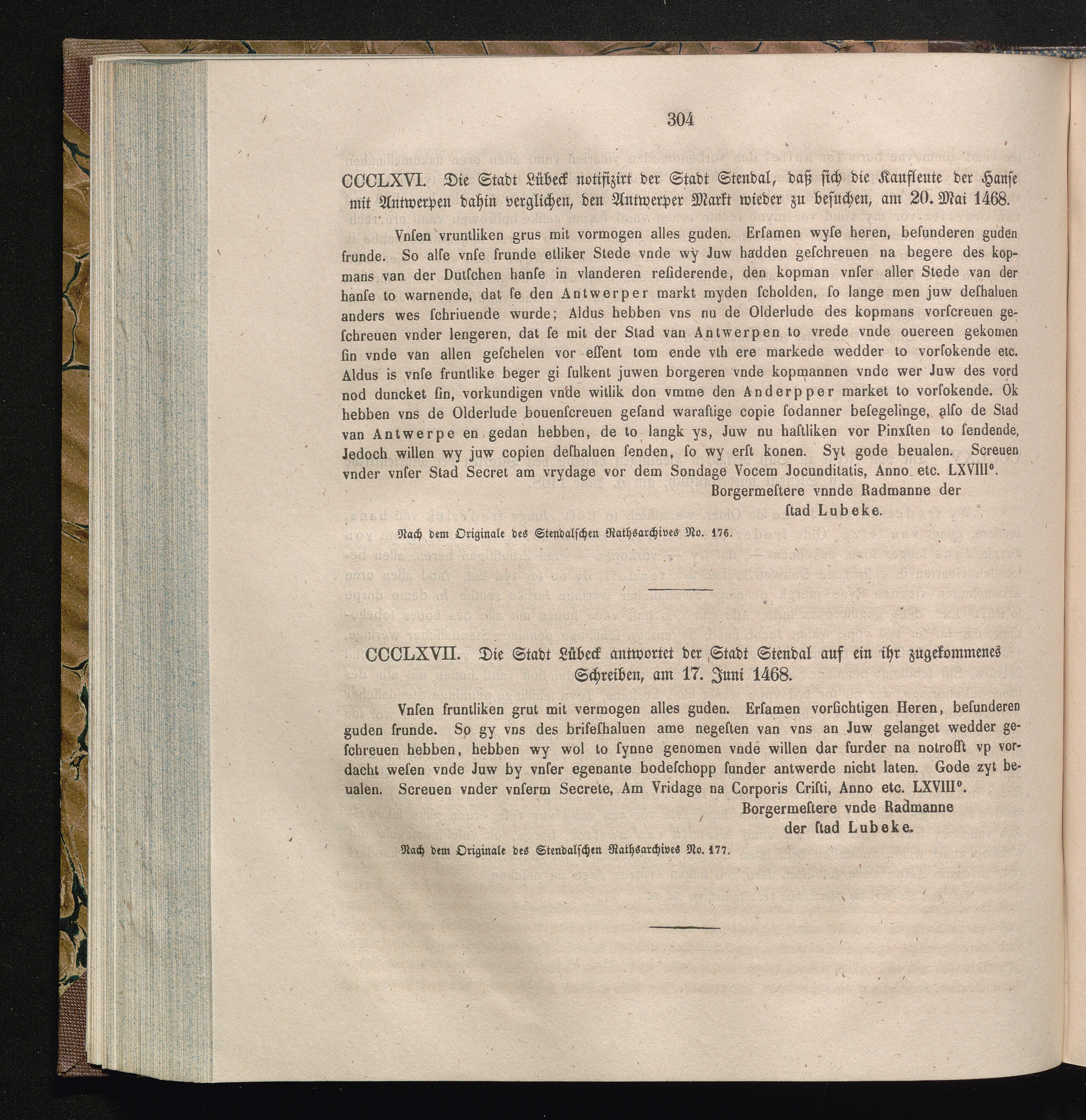CCCLXVII. Die Stadt Lübeck antwortet der Stadt Stendal auf eine ihr zugekommenes[...]