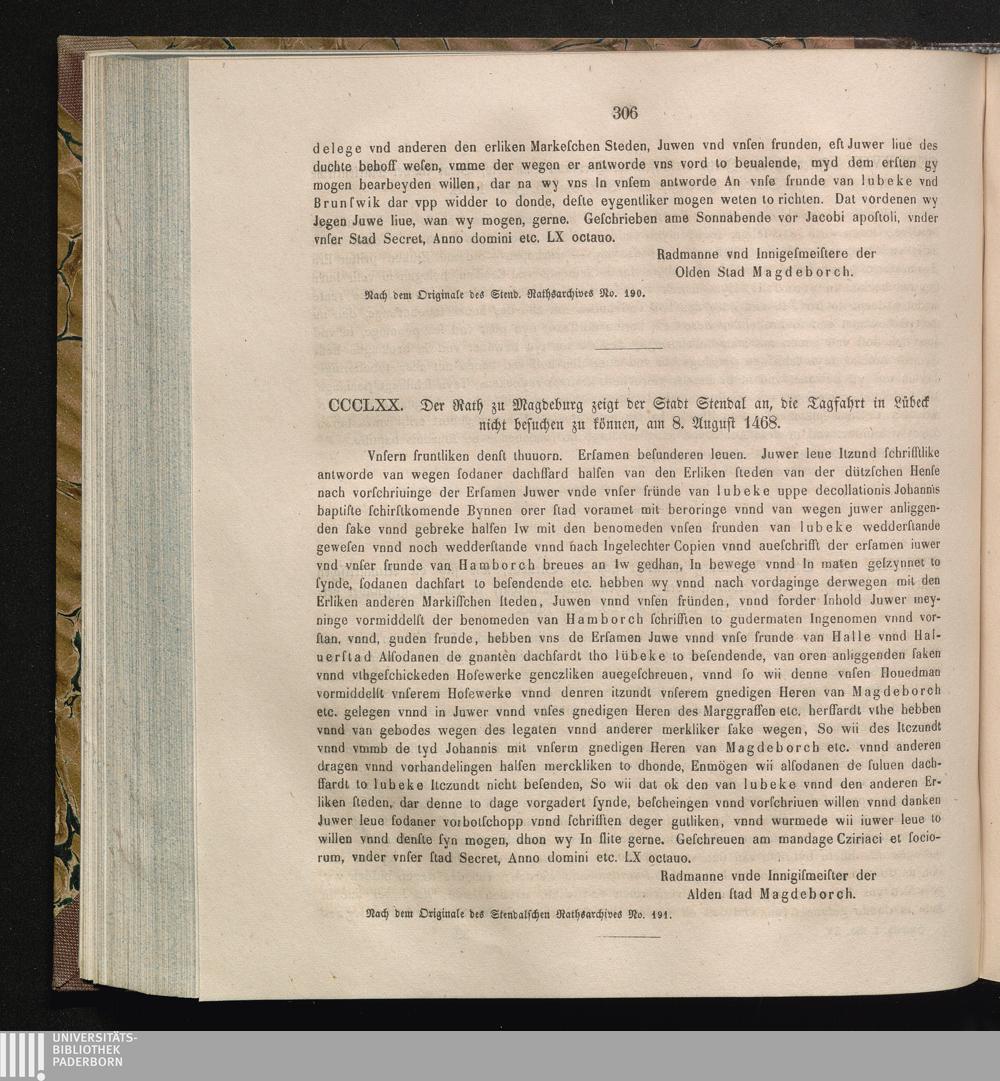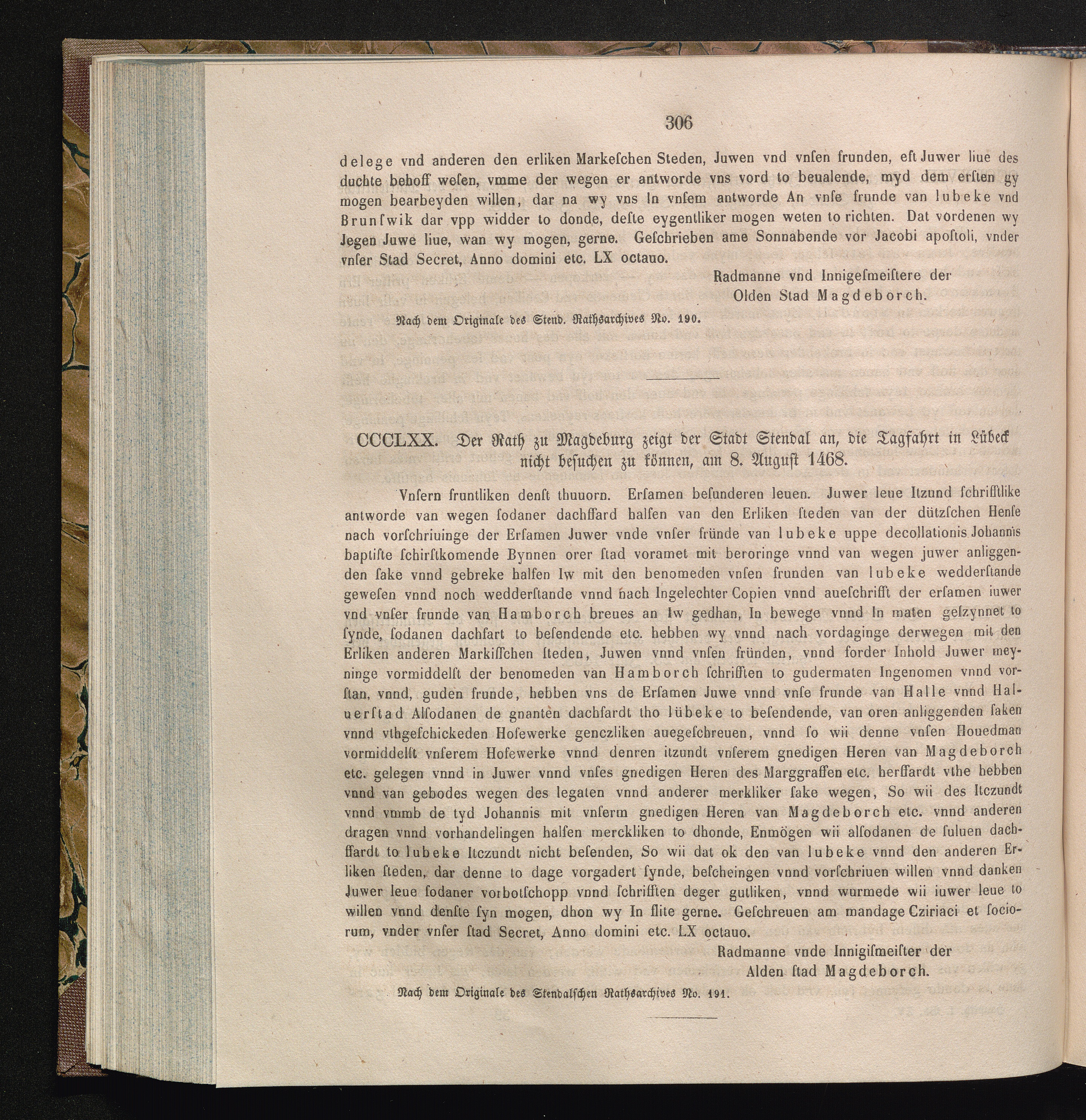 CCCLXX. Der Rath zu Magdeburg zeigt der Stadt Stendal an, die Tagfahrt in Lübeck[...]