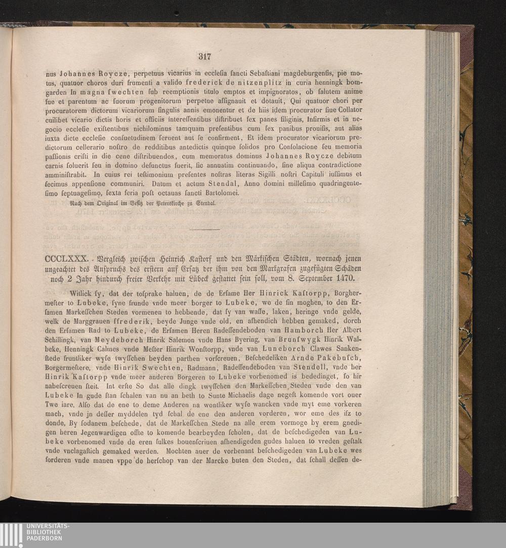 CCCLXXX. Vergleich zwischen Heinrich Kastorf und den Märkischen Städten, wornach[...]