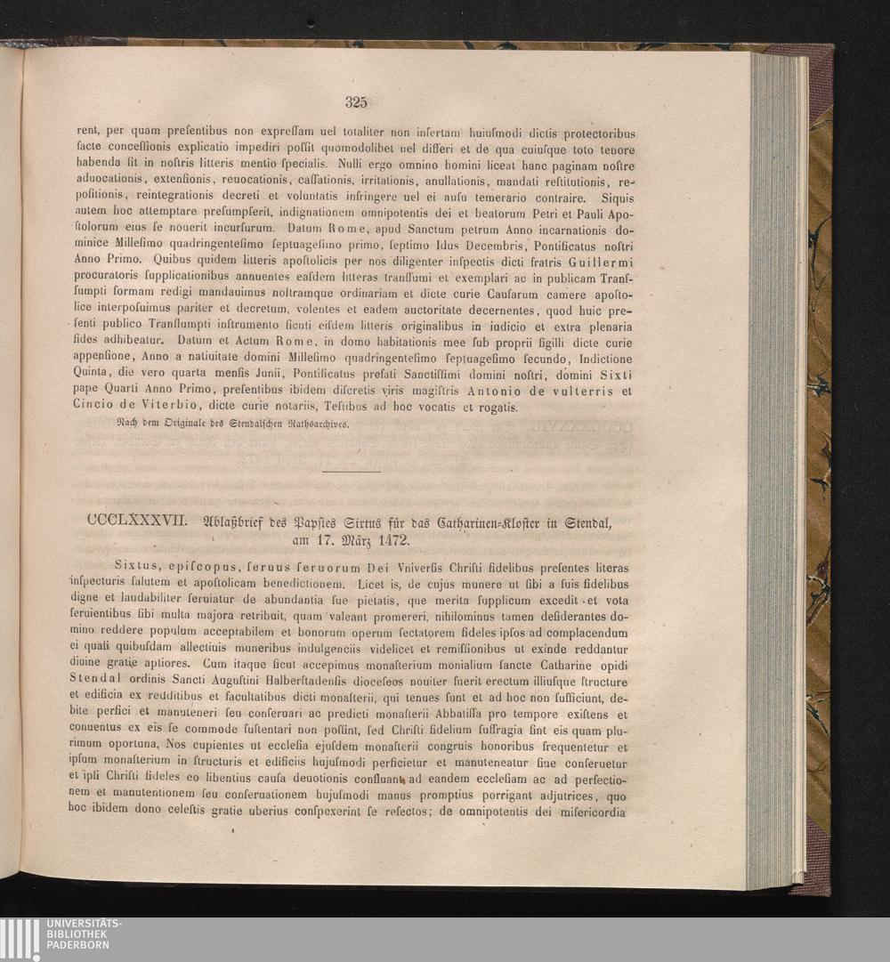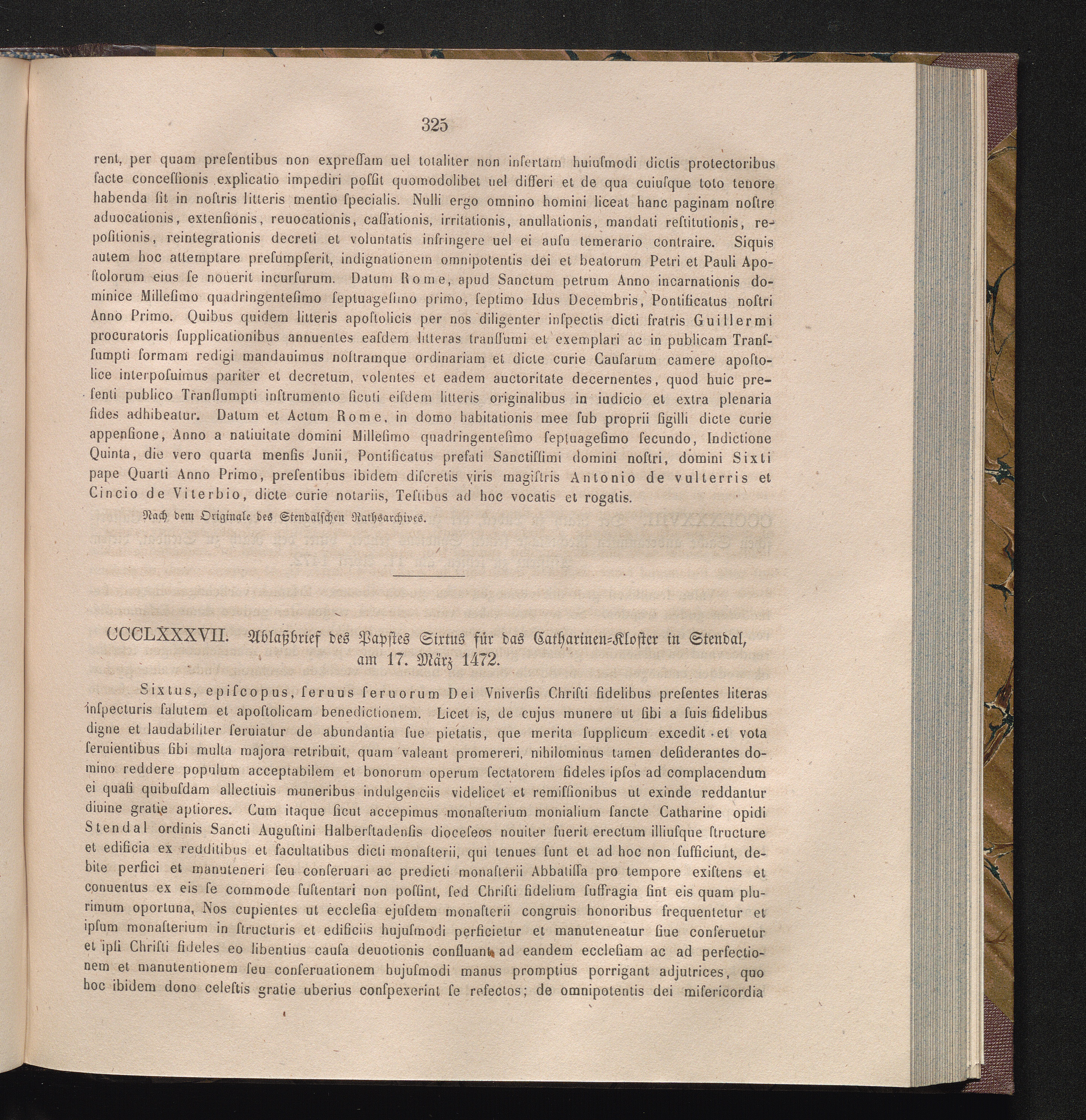 CCCLXXXVII. Ablaßbrief des Papstes Sixtus für das Catharinen-Kloster in Stendal,[...]