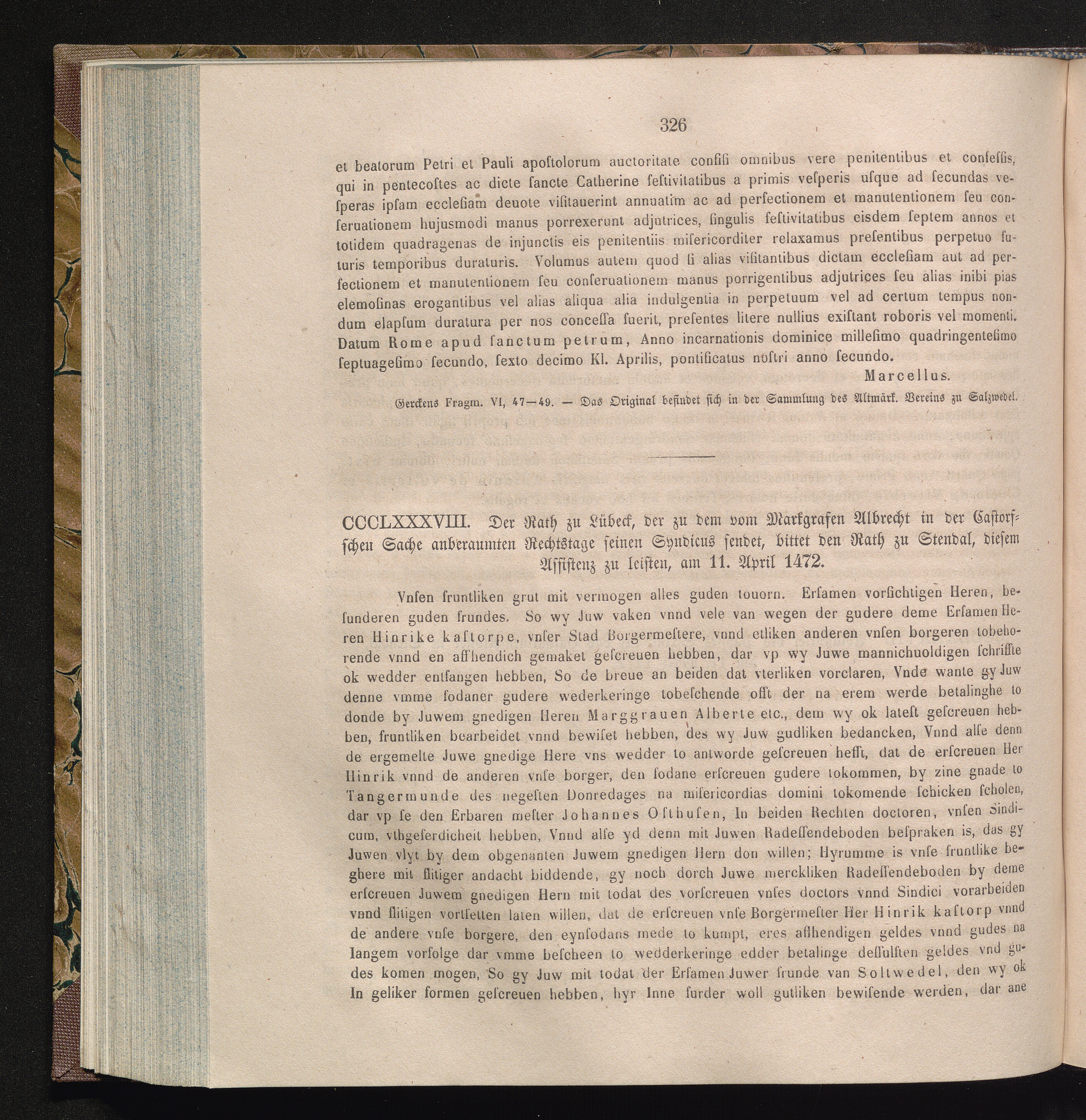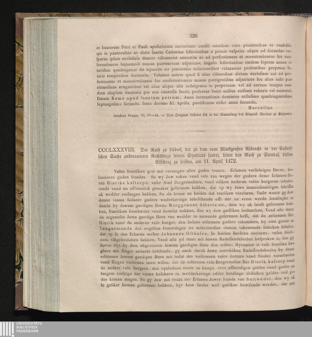 CCCLXXXIII. Der Rath zu Lübeck, der zu dem vom Markgrafen Albrecht in der Castorfschen[...]