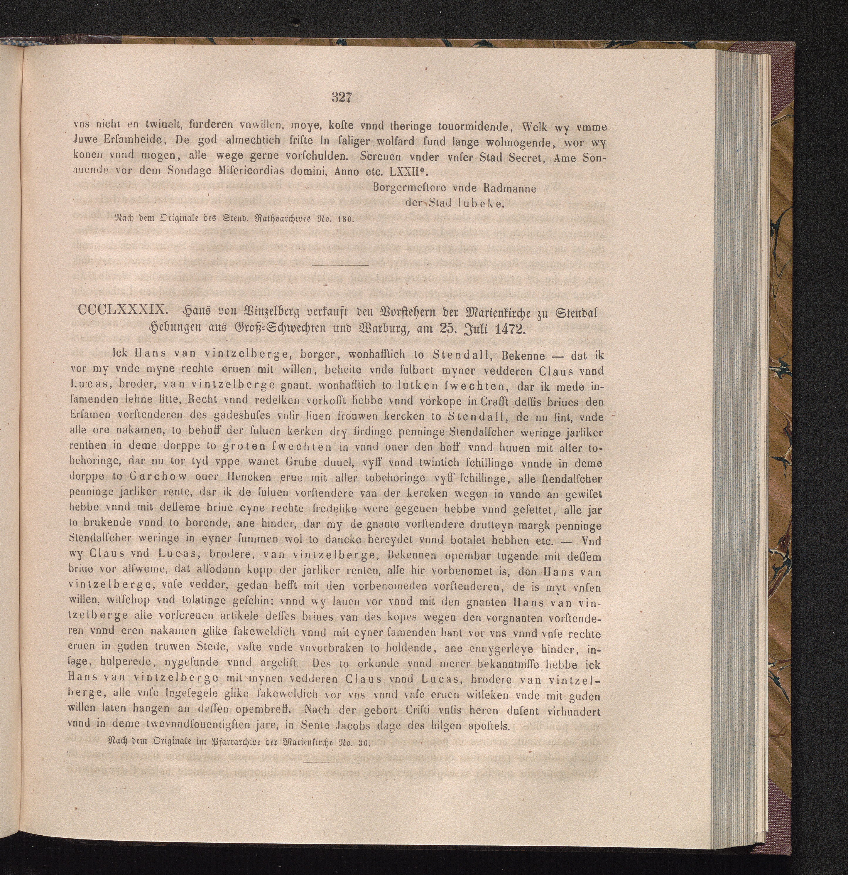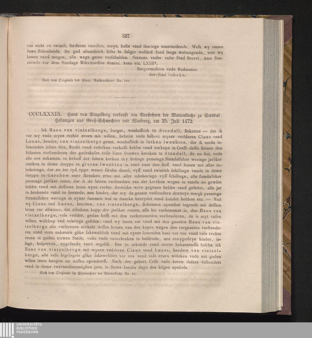 CCCLXXXIX. Hans von Vinzelberg verkauft den Vorstehern der Marienkirche zu Stendal[...]