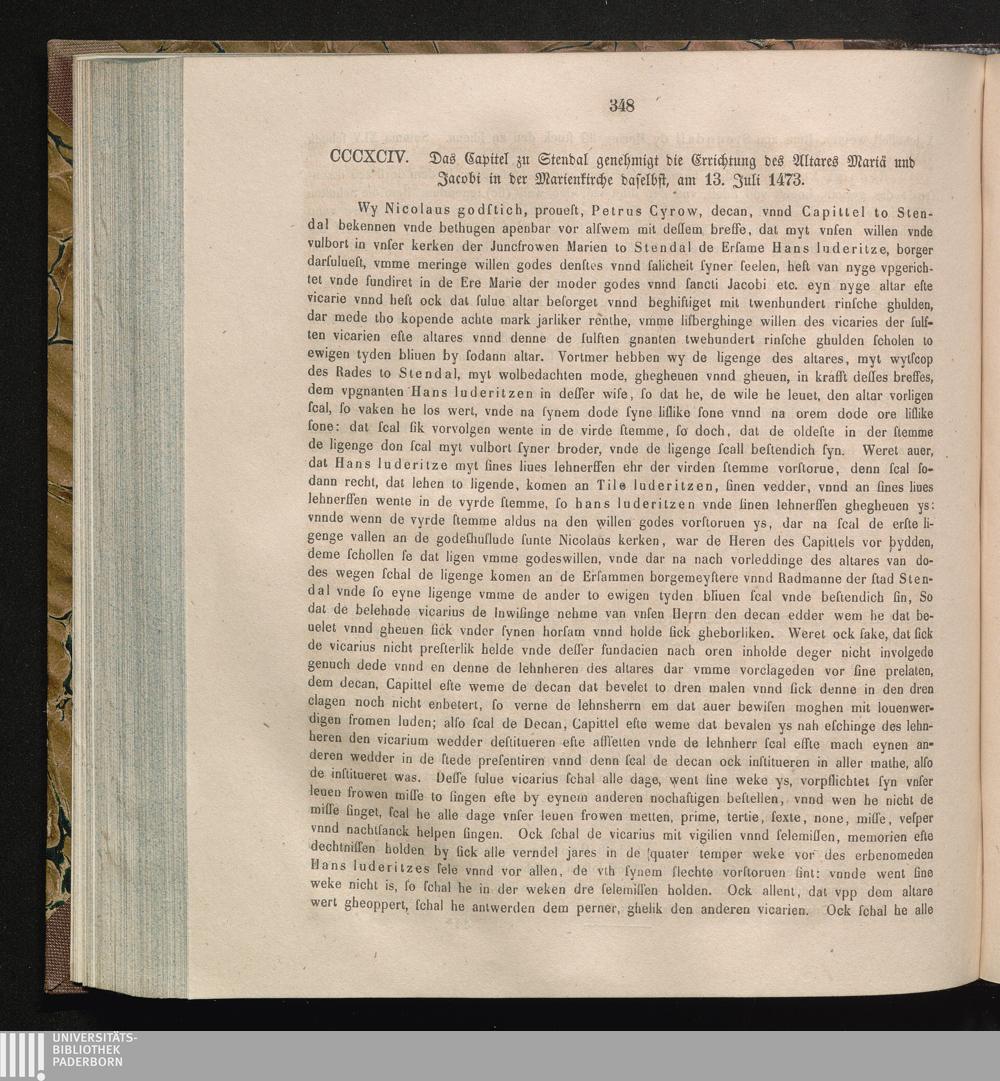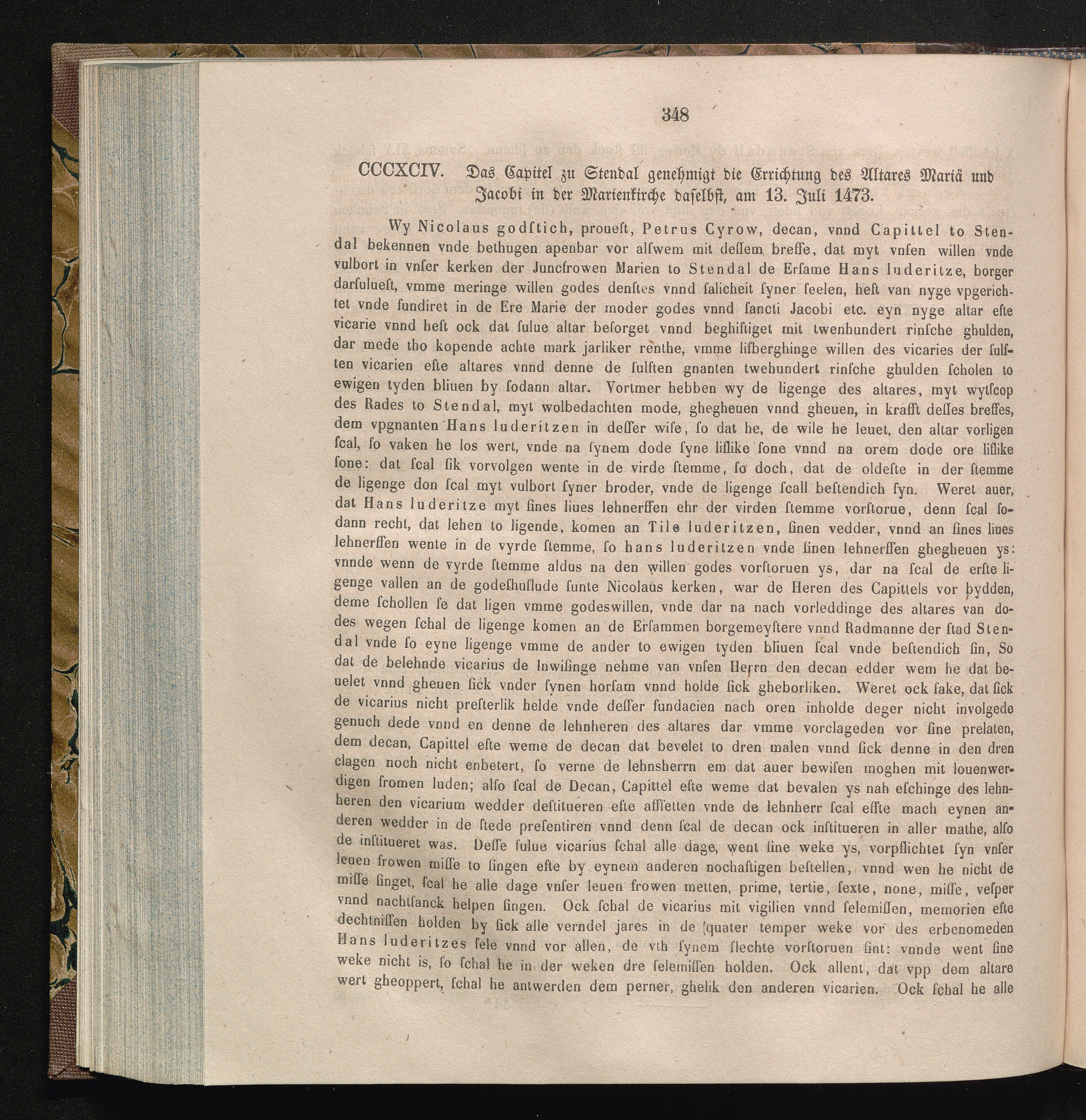 CCCXCIV. Das Capitel zu Stendal genehmigt die Errichtung des Altares Mariä und Jacobi[...]