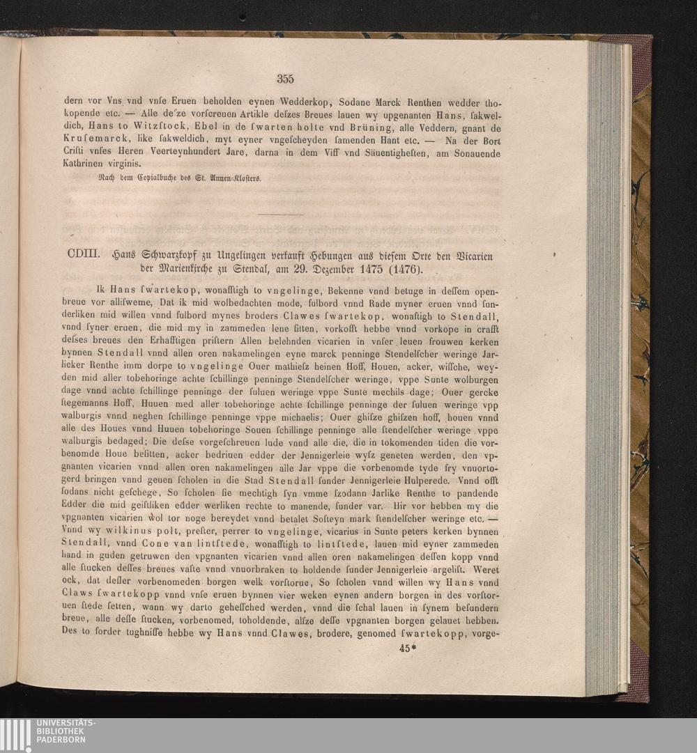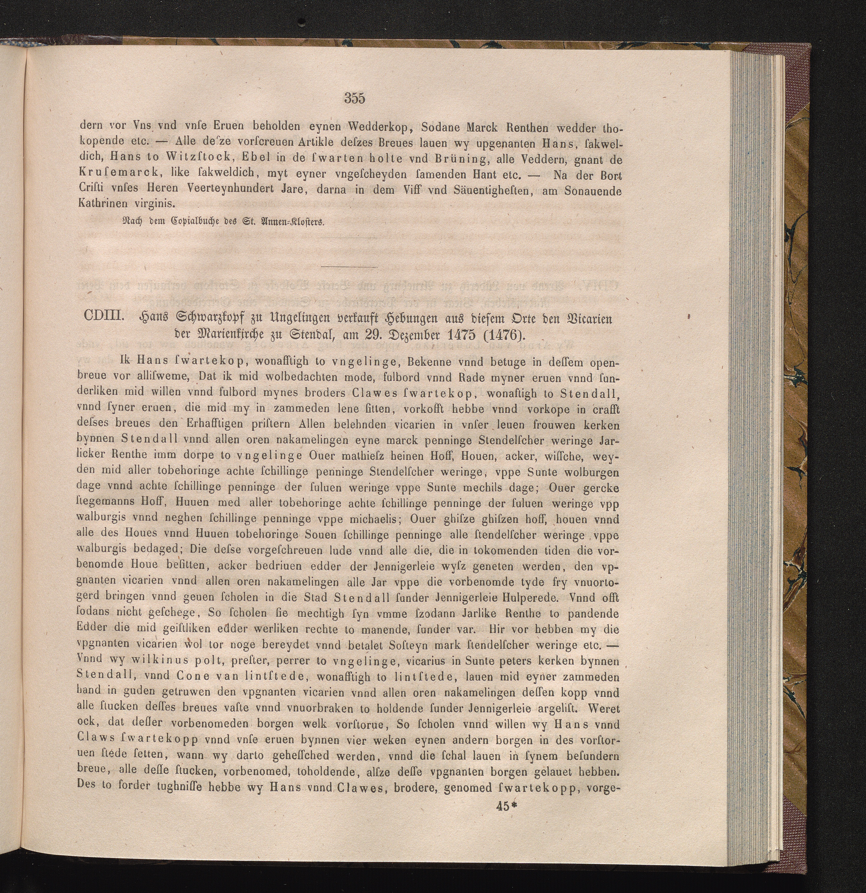 CDIII. Hans Schwarzkopf zu Ungelingen verkauft Hebungen aus diesem Orte den Vicarien[...]