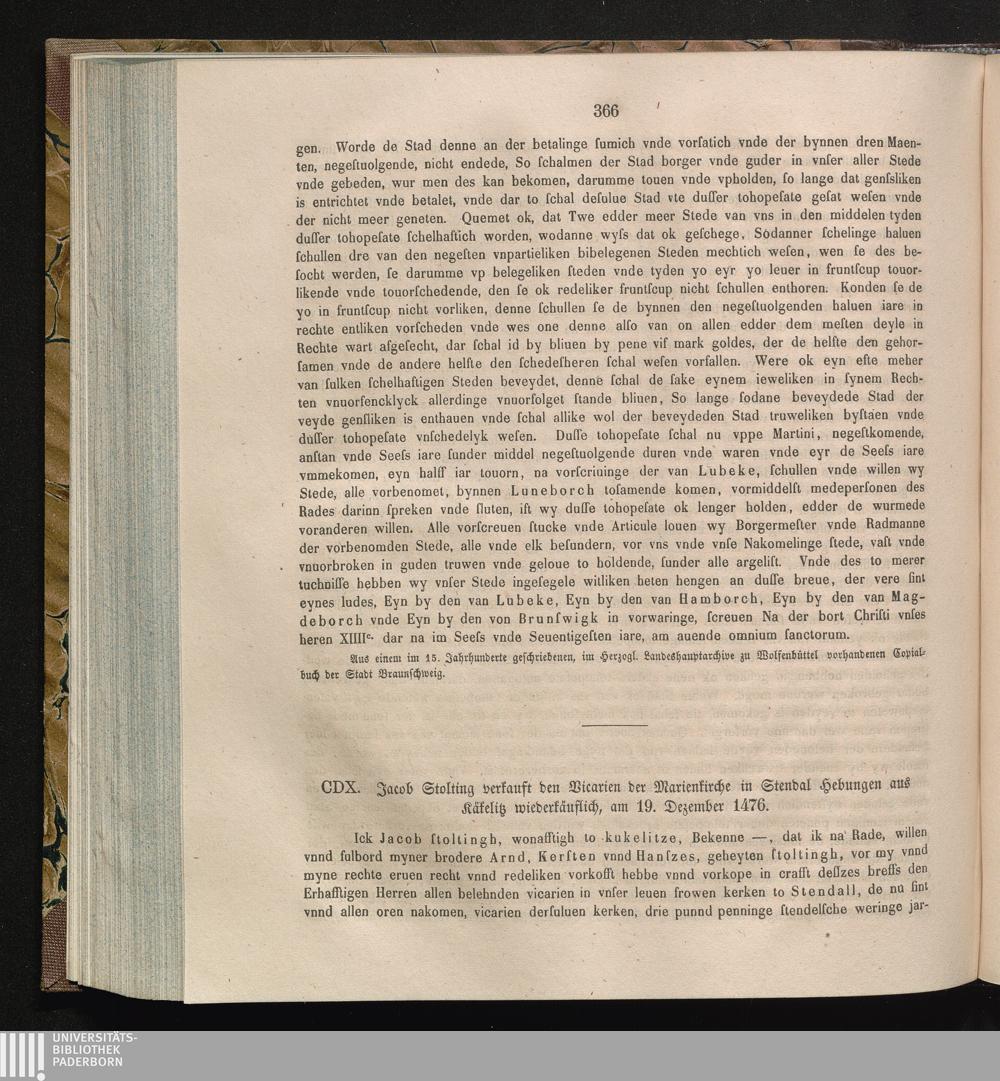 CDX. Jacob Stolting verkauft den Vicarien der Marienkirche zu Stendal Hebungen aus[...]