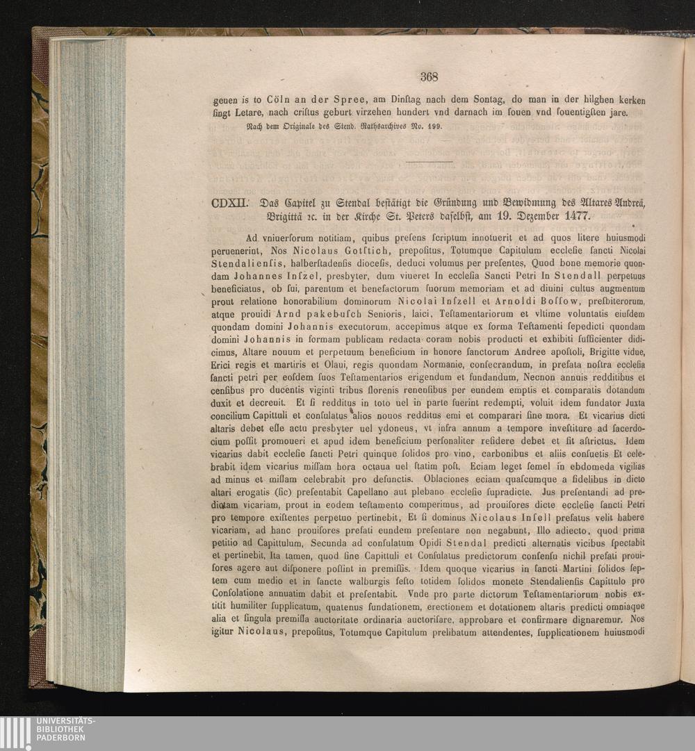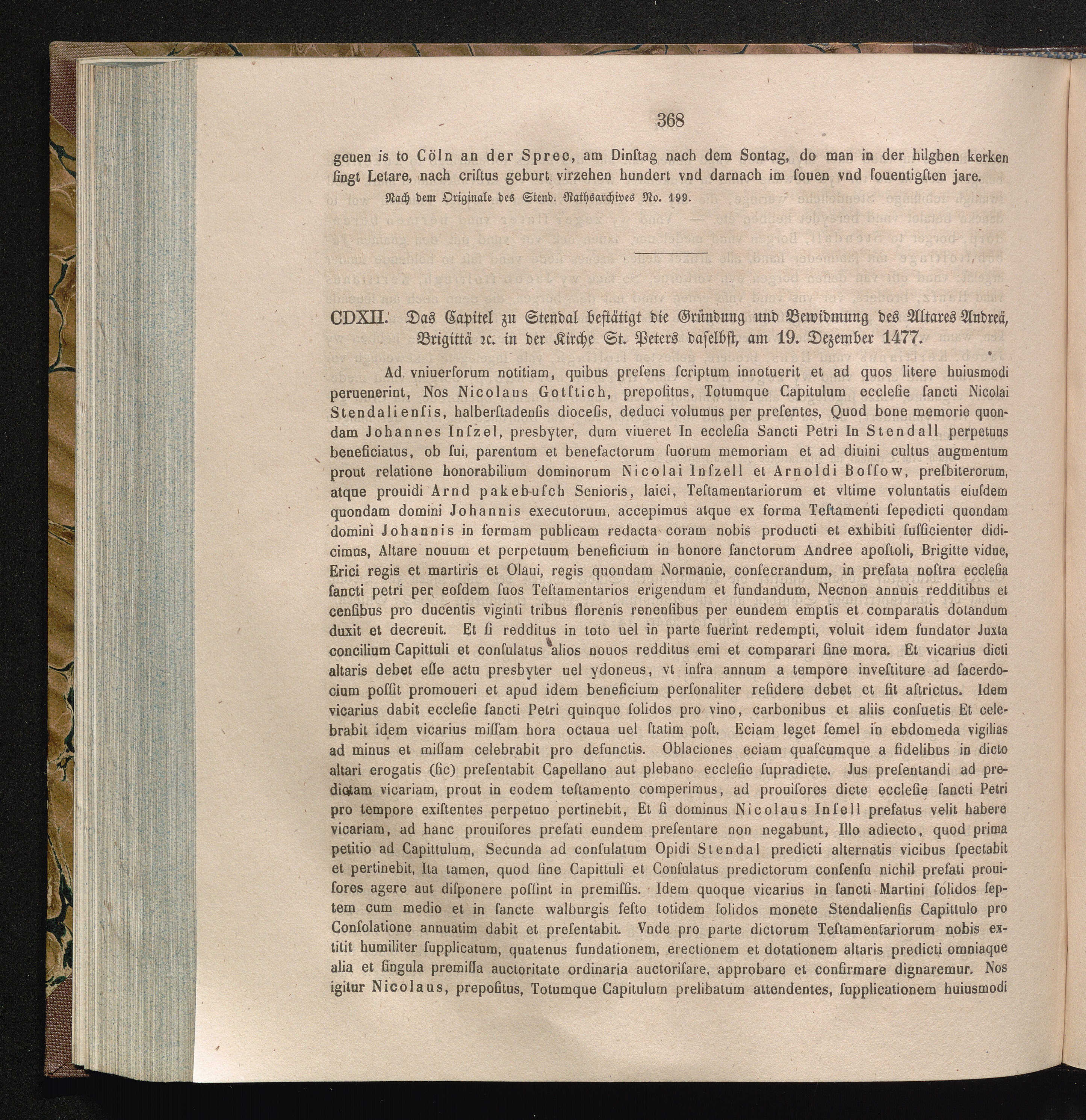 CDXII. Das Capitel zu Stendal bestätigt die Gründung und Bewidmung des Altares Andreä,[...]