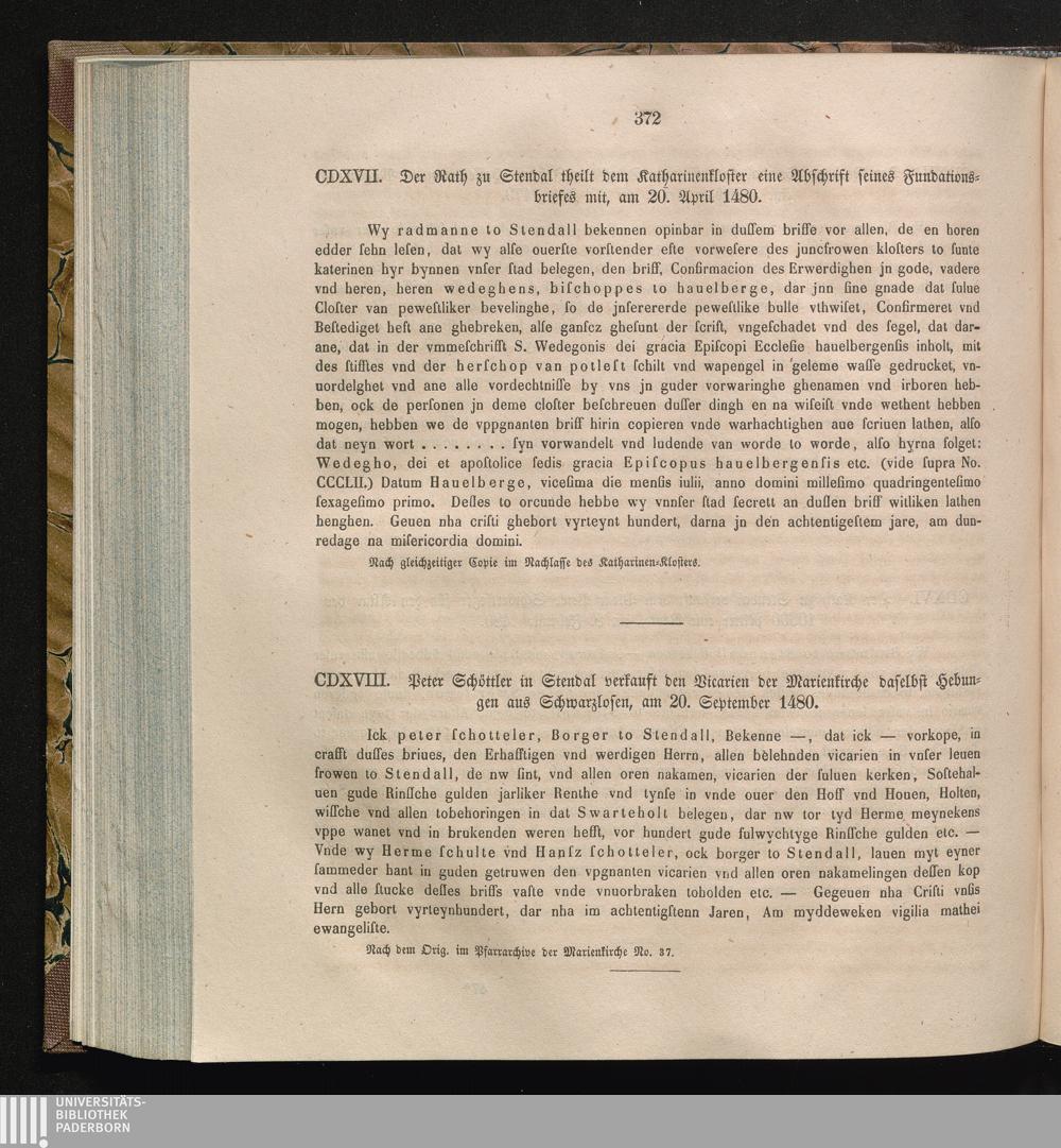 CDXVIII. Peter Schöttler in Stendal verkauft den Vicarien der Marienkirche daselbst[...]