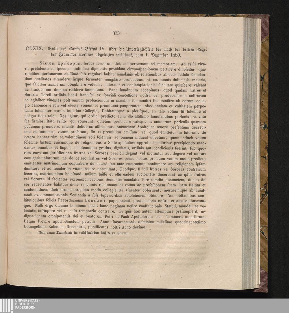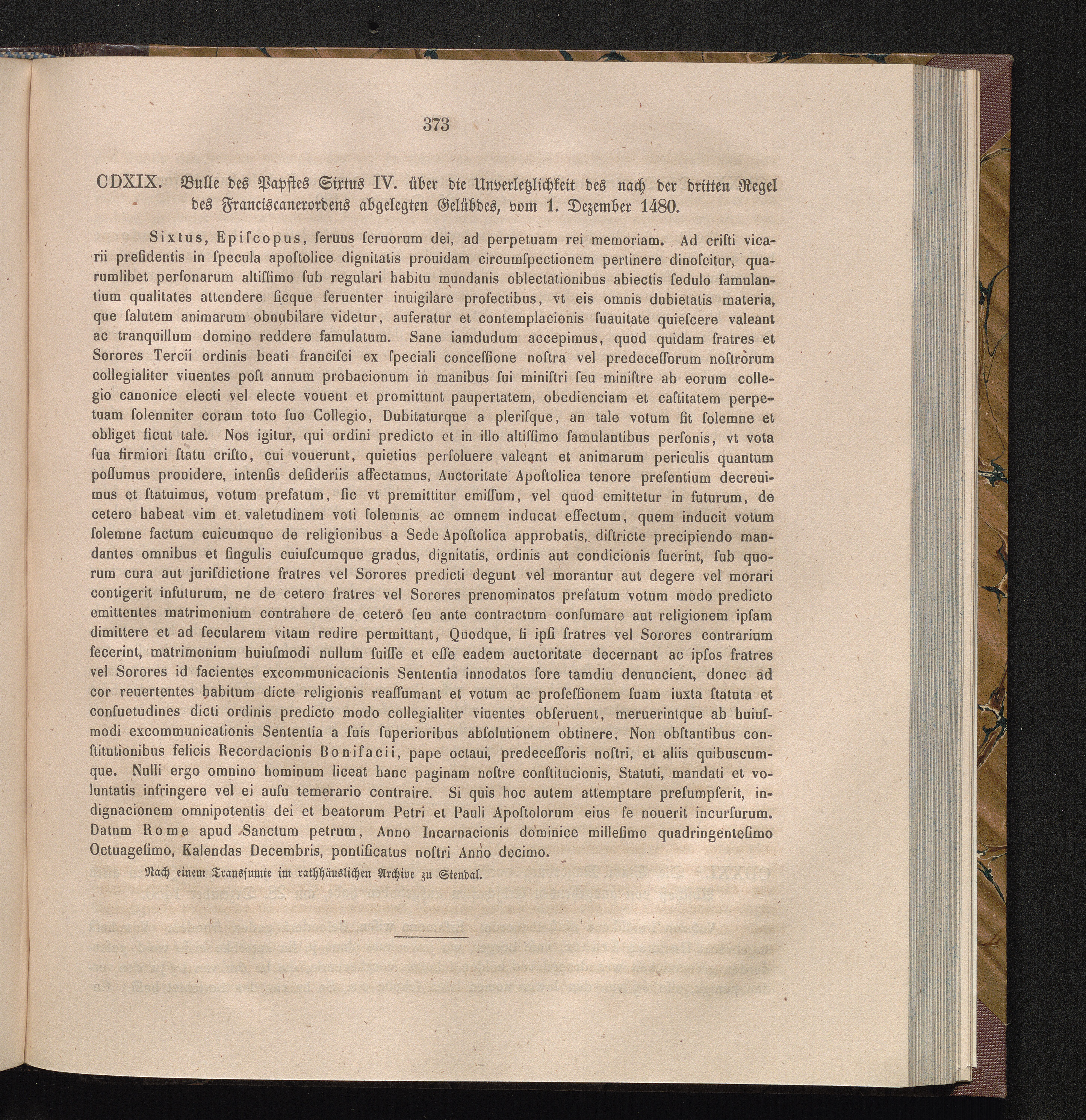 CDXIX. Bulle des Papstes Sixtus IV. über die Unverletzlichkeit des nach der dritten[...]