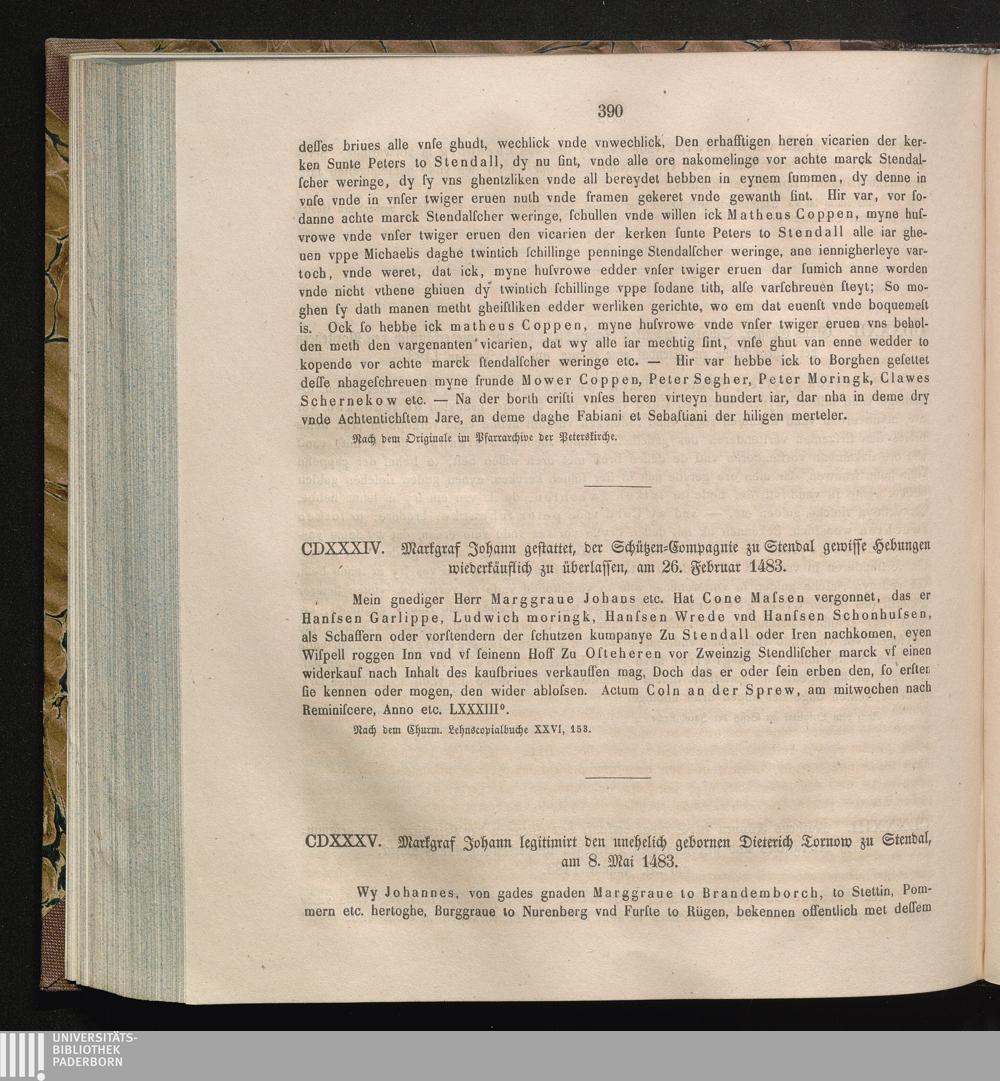 CDXXXV. Markgraf Johann legitimirt den unehelich gebornen Dieterich Tornow zu Stendal,[...]