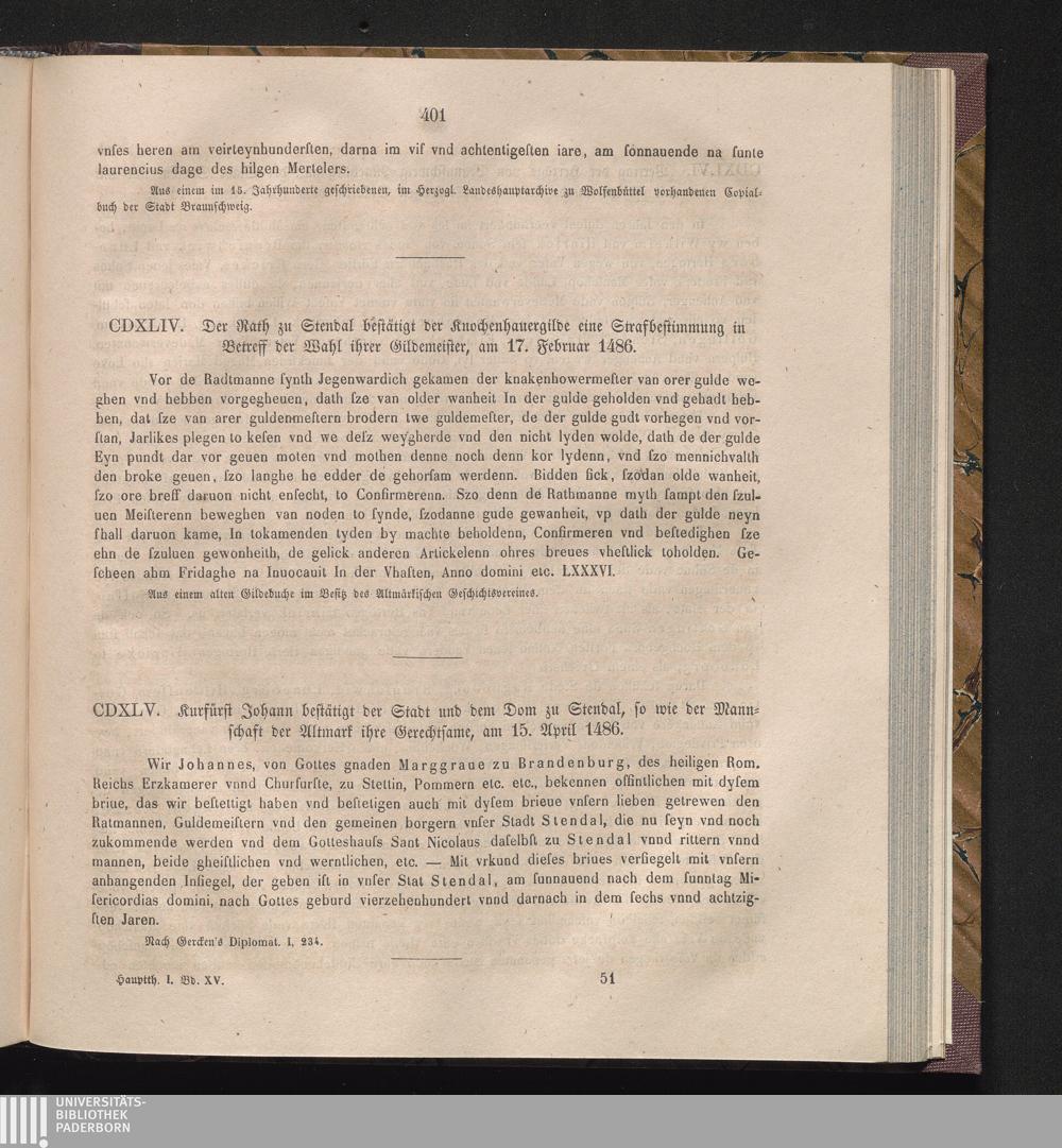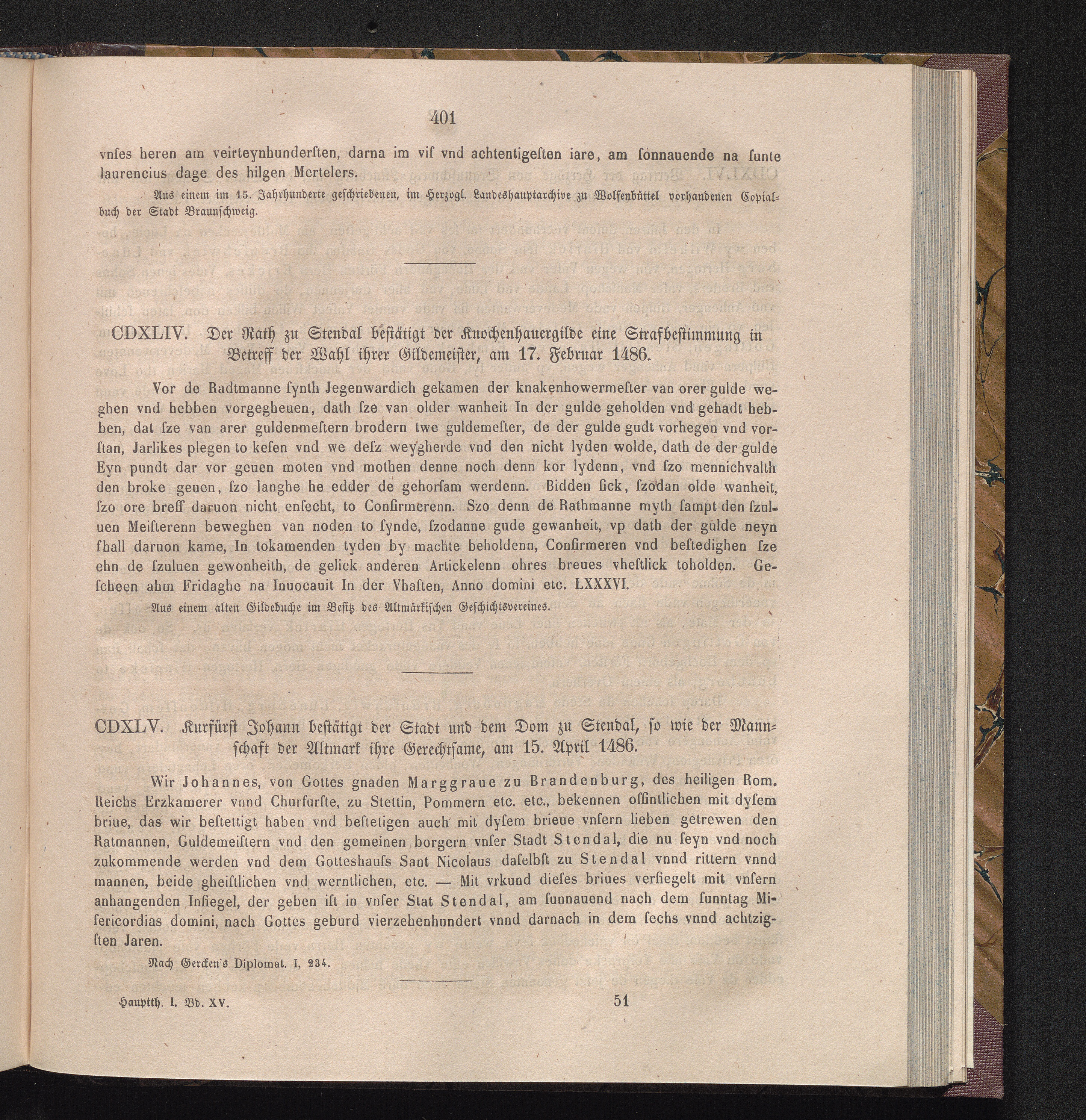 CDXLV. Kurfürst Johann bestätigt der Stadt und dem Dom zu Stendal, so wie der Mannschaft[...]