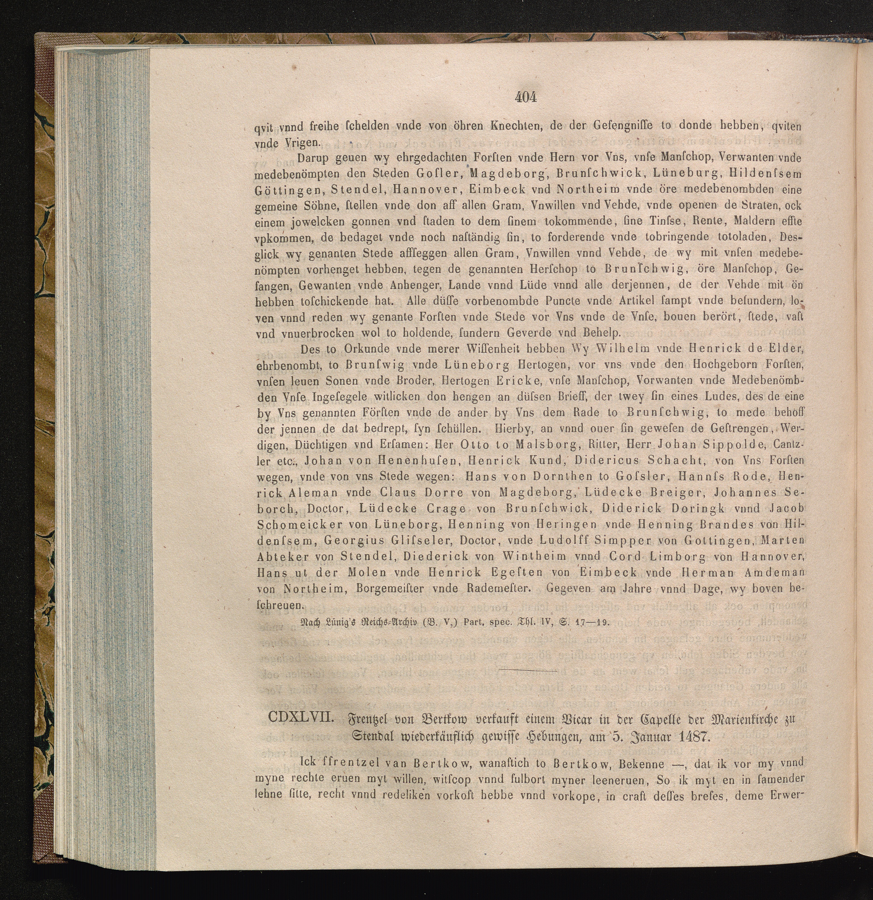 CDXLVII. Frenzel von Bertkow verkauft einem Vicar in der Capelle der Marienkirche[...]
