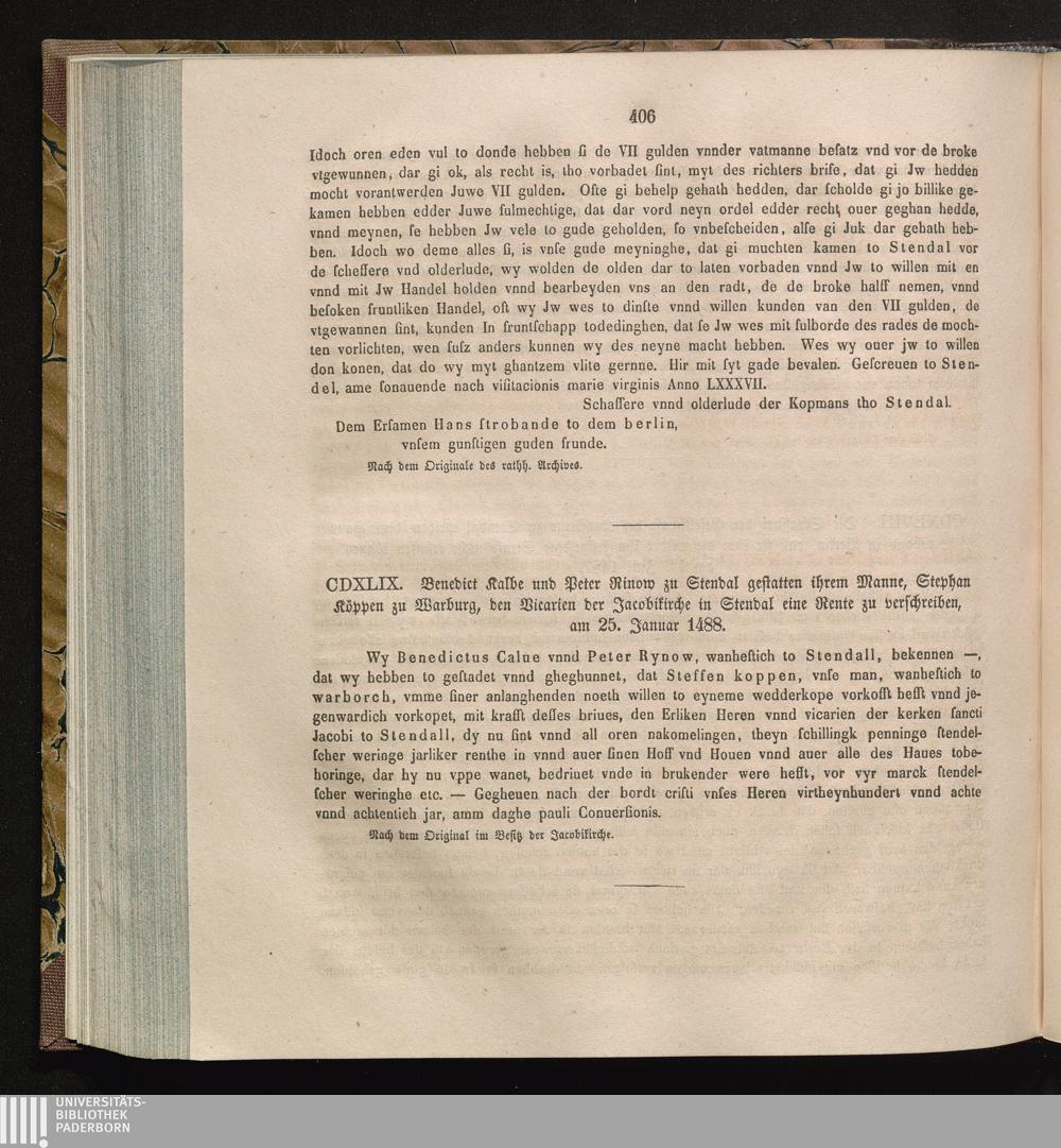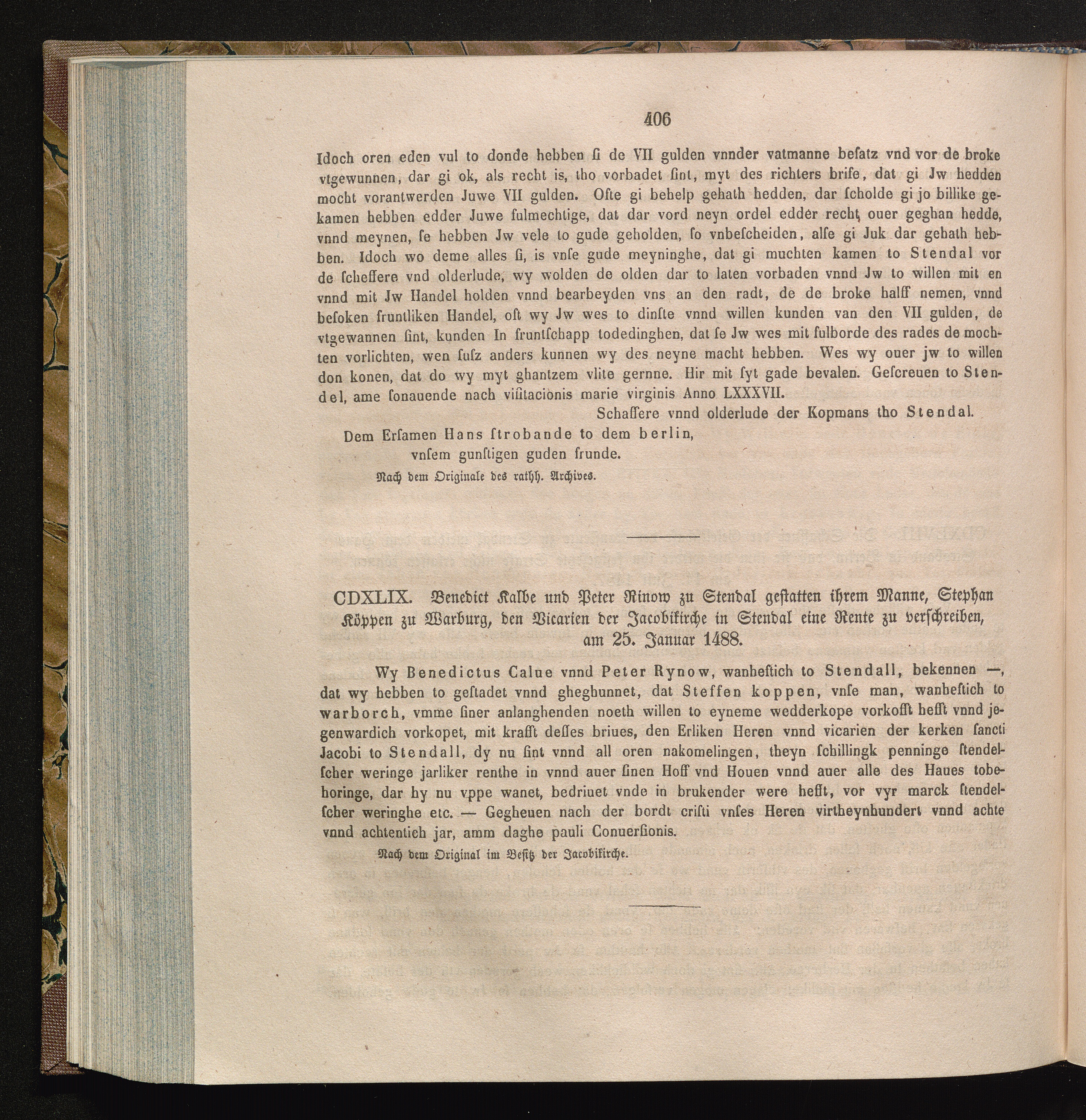 CDXLIX. Benedict Kalbe und Peter Rinow zu Stendal gestatten ihrem Manne, Stephan[...]