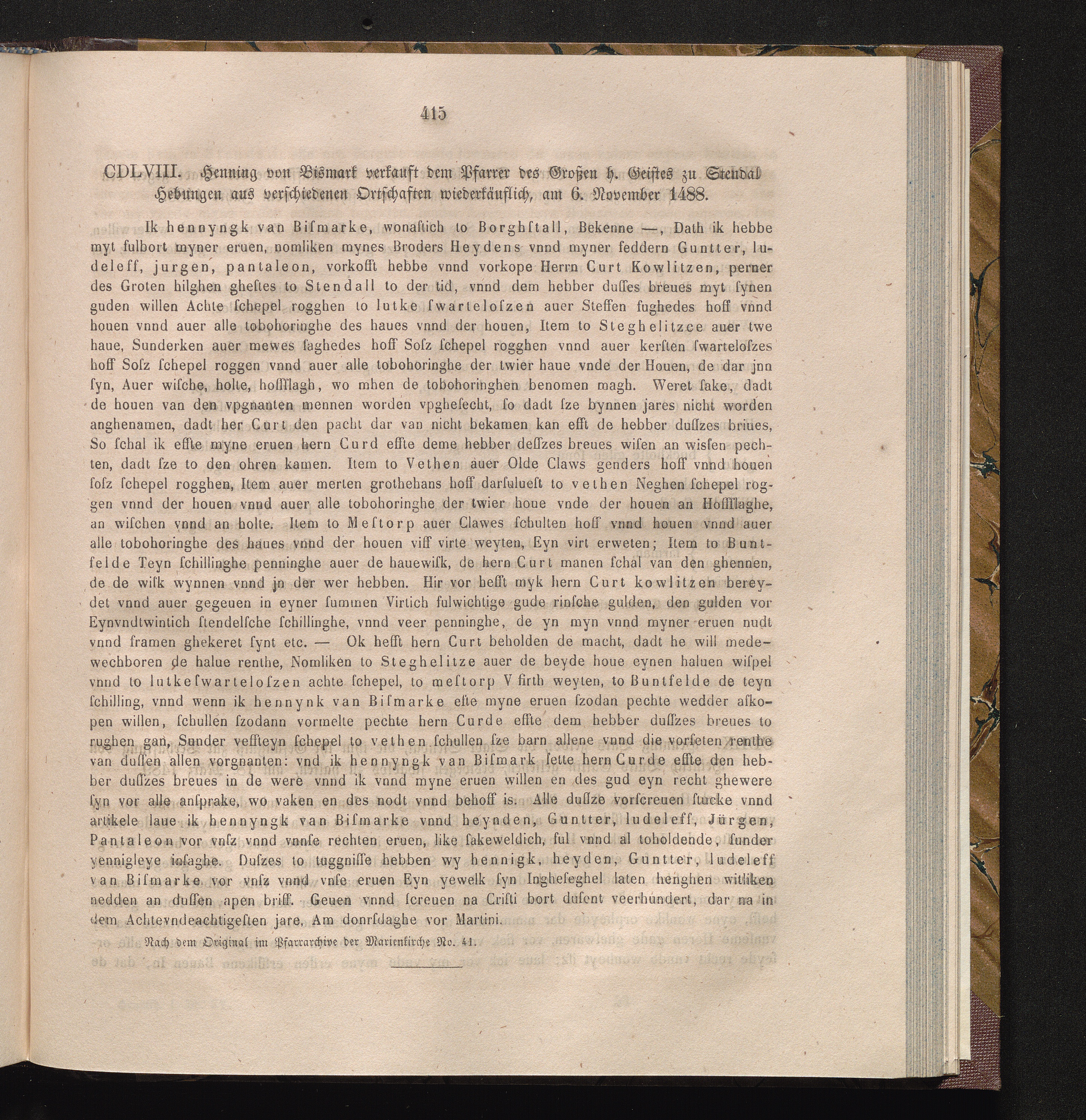CDLVIII. Henning von Bismark verkauft dem Pfarrer des Großen h. Geistes zu Stendal[...]