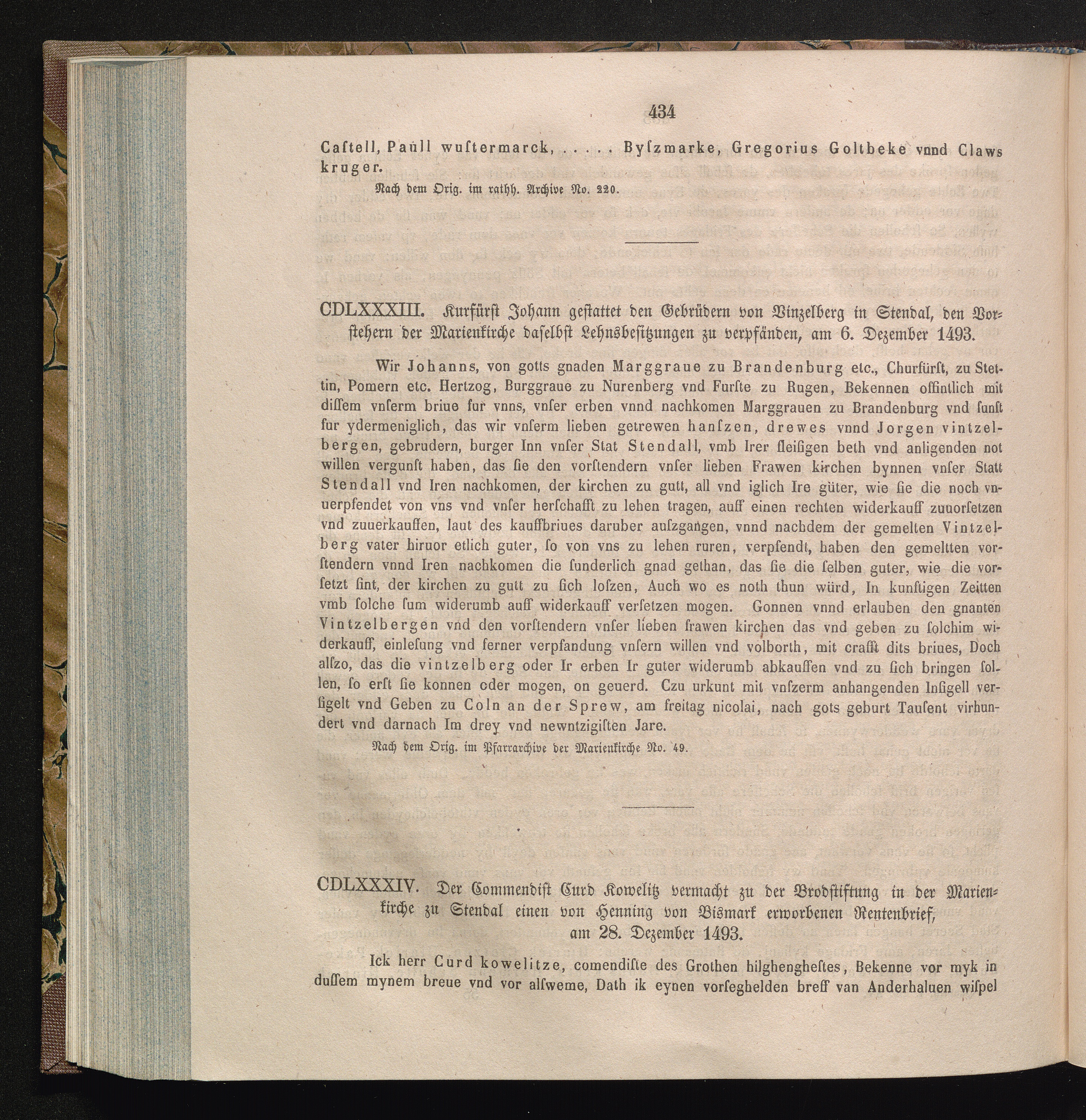 CDLXXXIV. Der Commendist Curd Kowelitz vermacht zu der Brodstiftung in der Marienkirche[...]