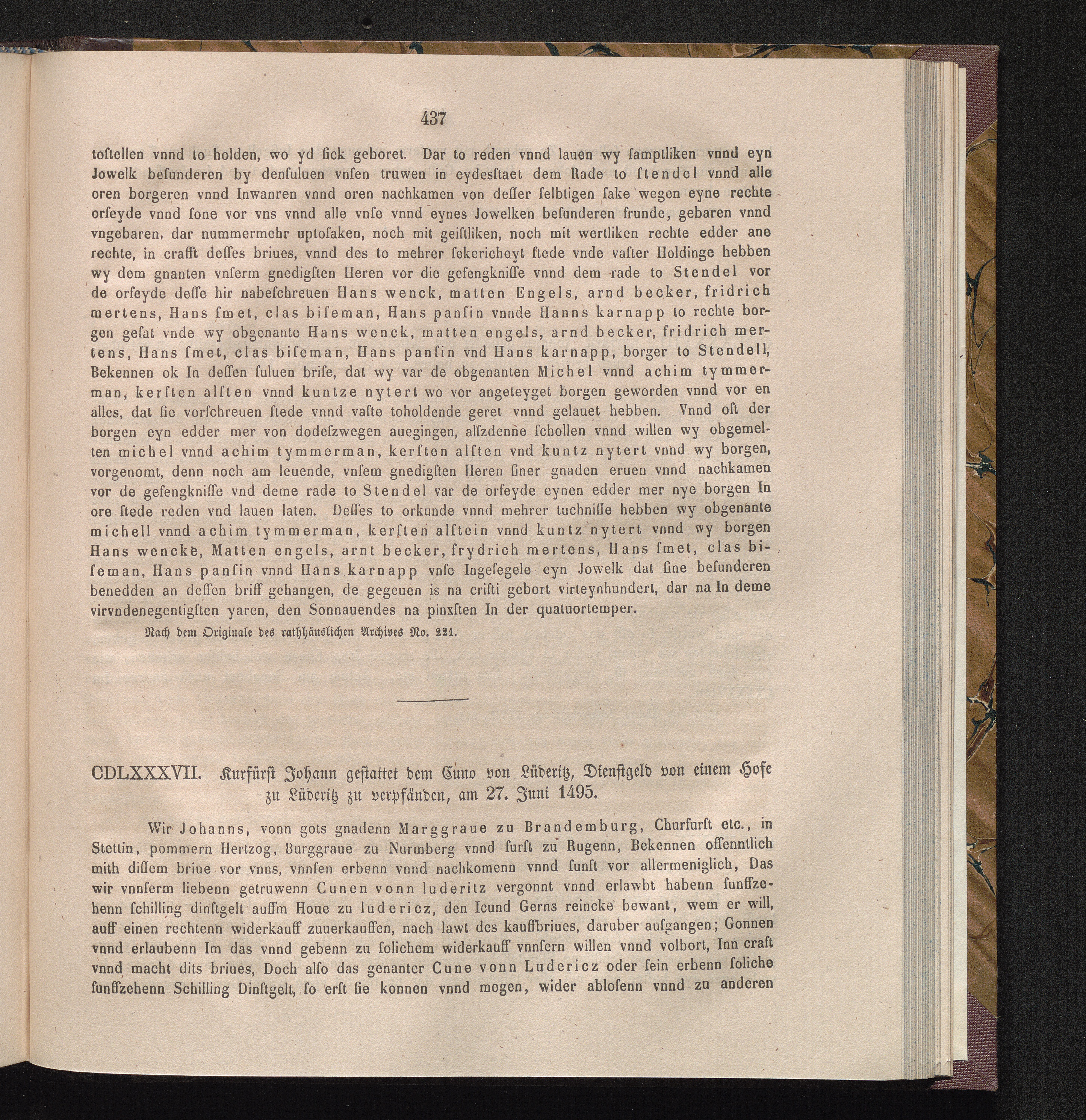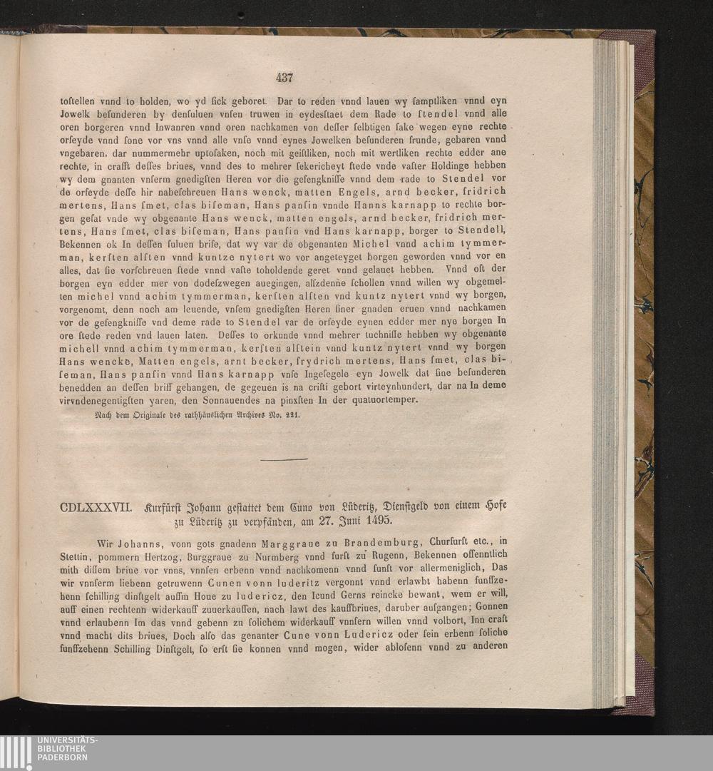 CDLXXXVII. Kurfürst Johann gestattet dem Cuno von Lüderitz, Dienstgeld von einem[...]