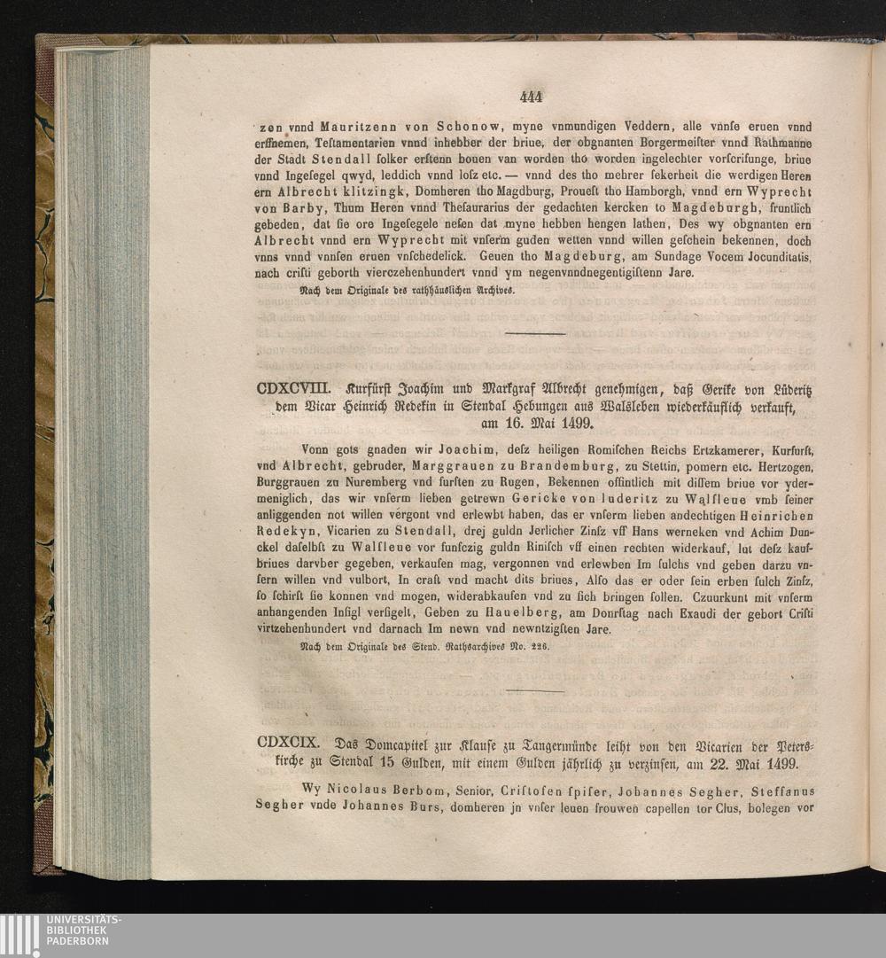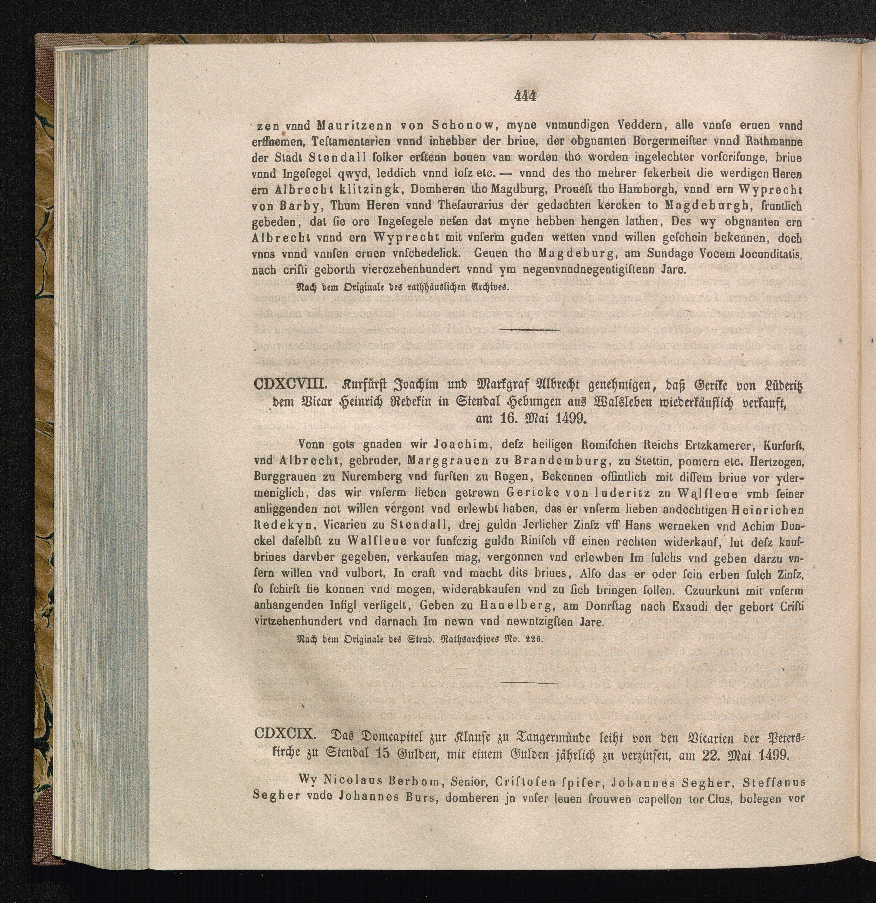 CDXCIX. Das Domcapitel zur Klause zu Tangermünde leiht von den Vicarien der Peterskirche[...]
