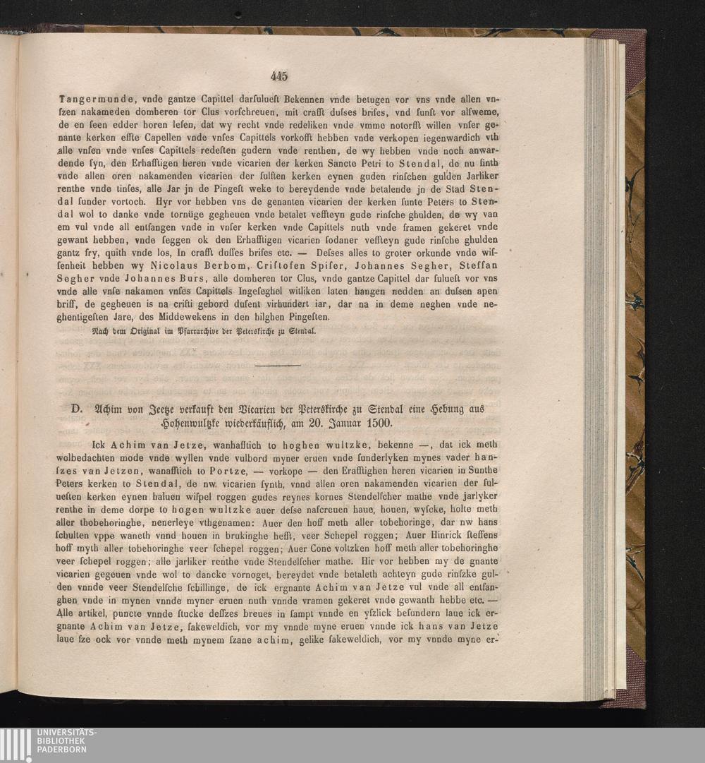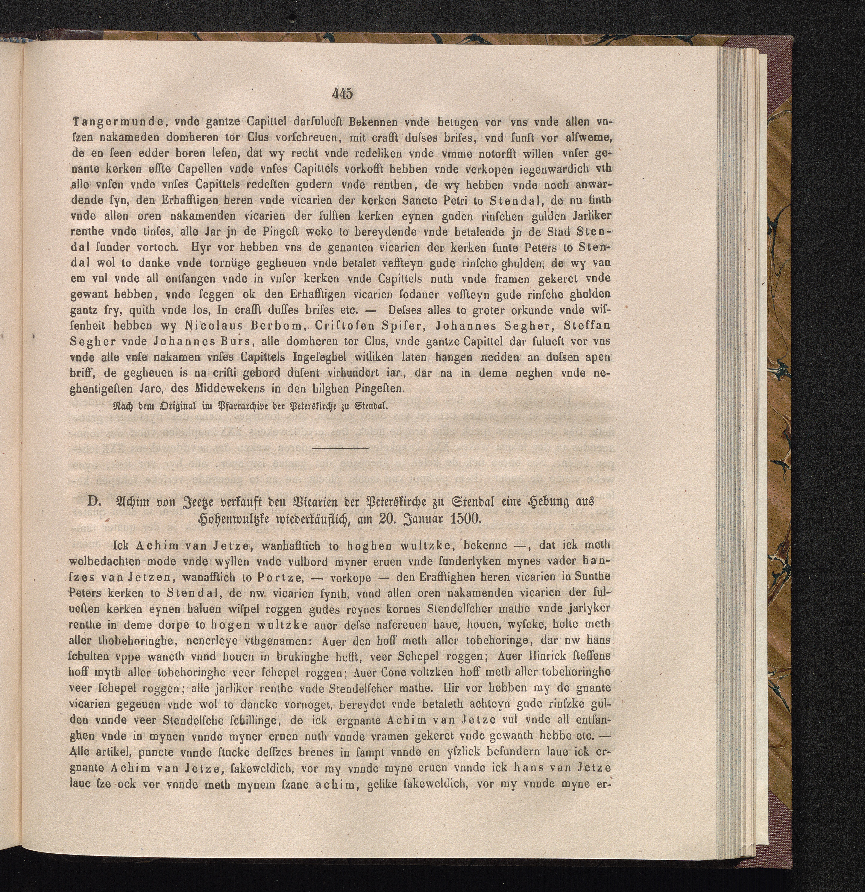 D. Achim von Jeetze verkauft den Vicarien der Peterskirche zu Stendal eine Hebung[...]