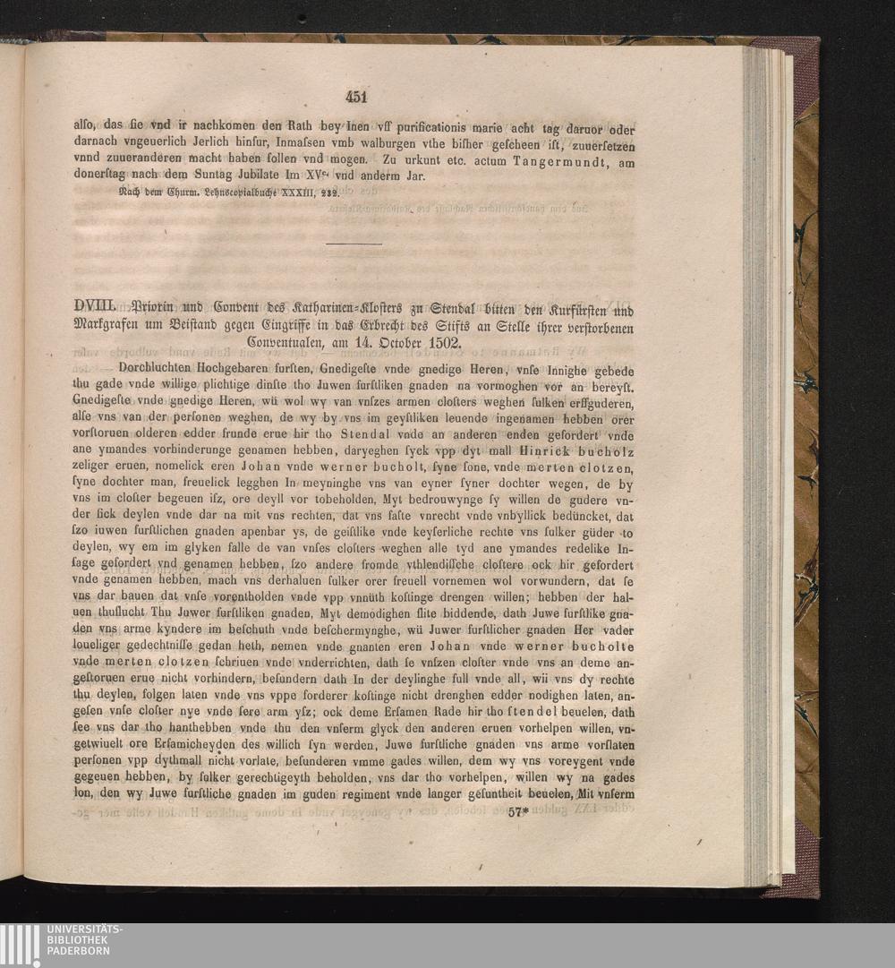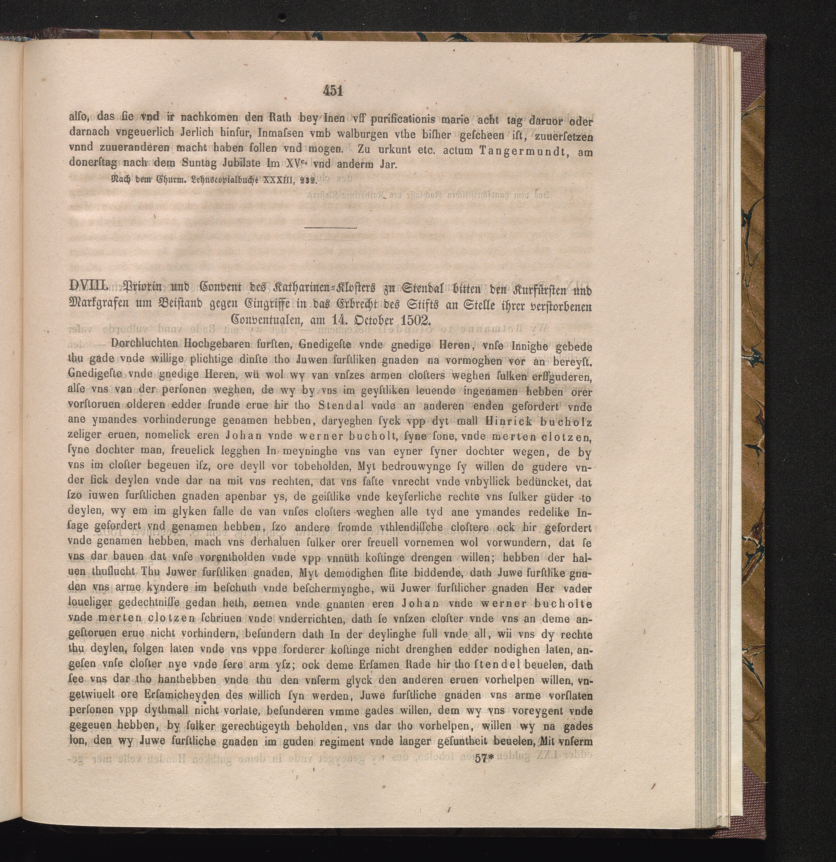 DVIII. Priorin und Convent des Katharinen- Klosters zu Stendal bitten den Kurfürsten[...]