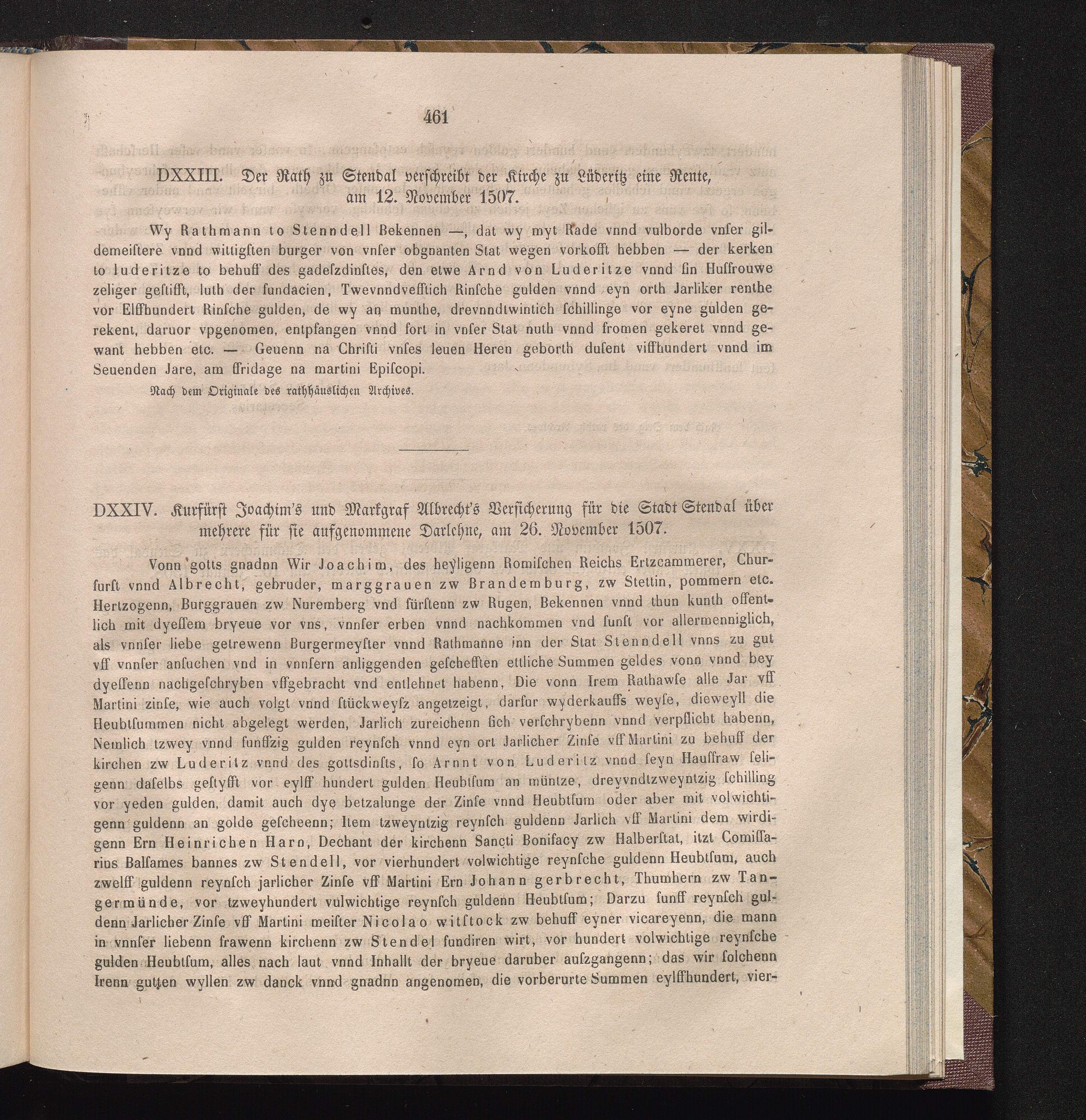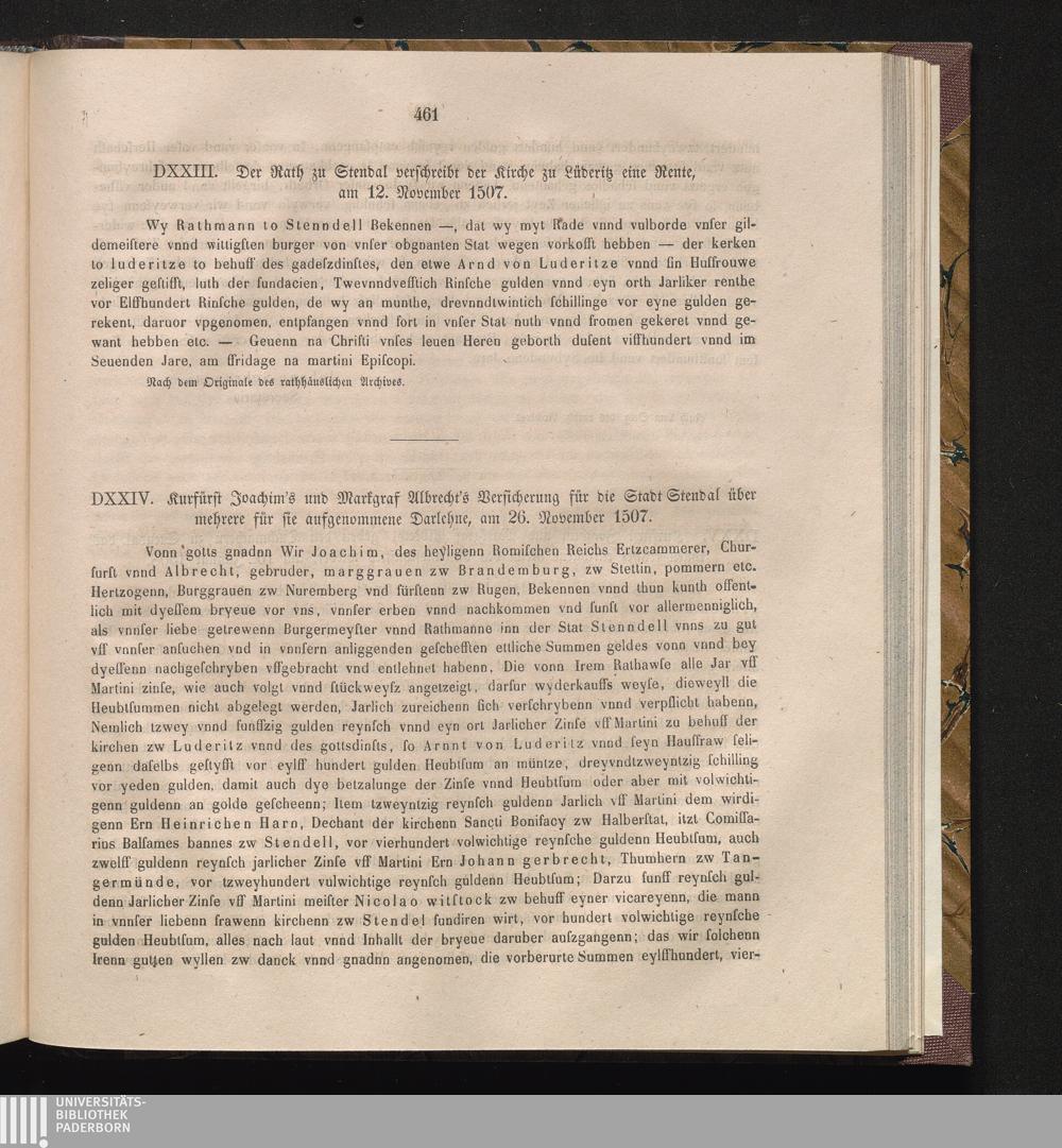 DXXIV. Kurfürst Joachim's und Markgraf Albrecht's Versicherung für die Stadt Stendal[...]