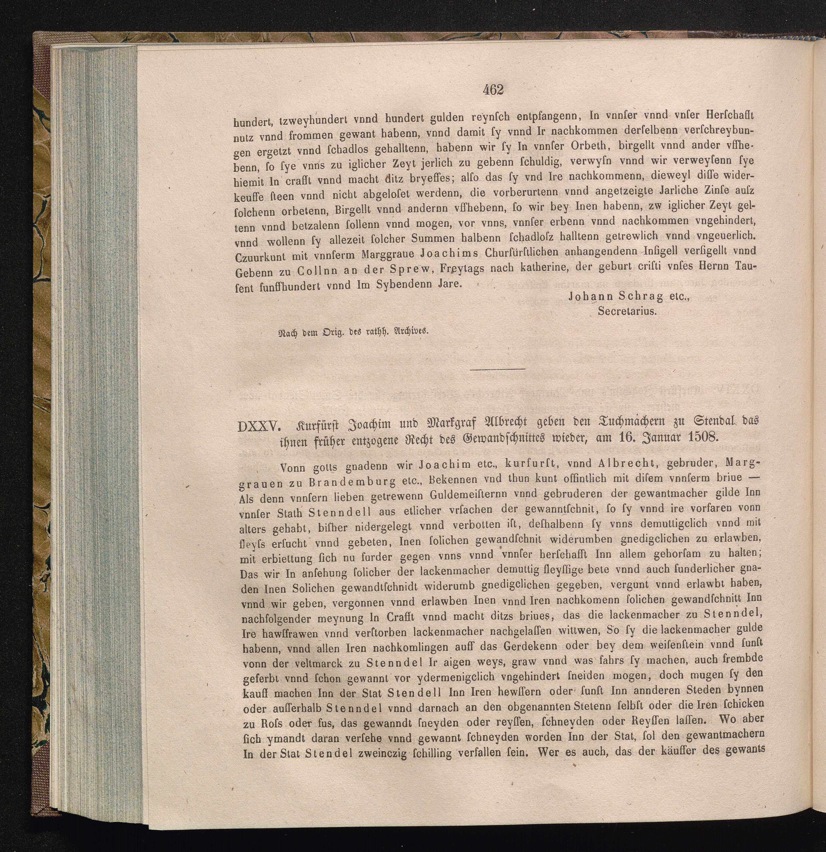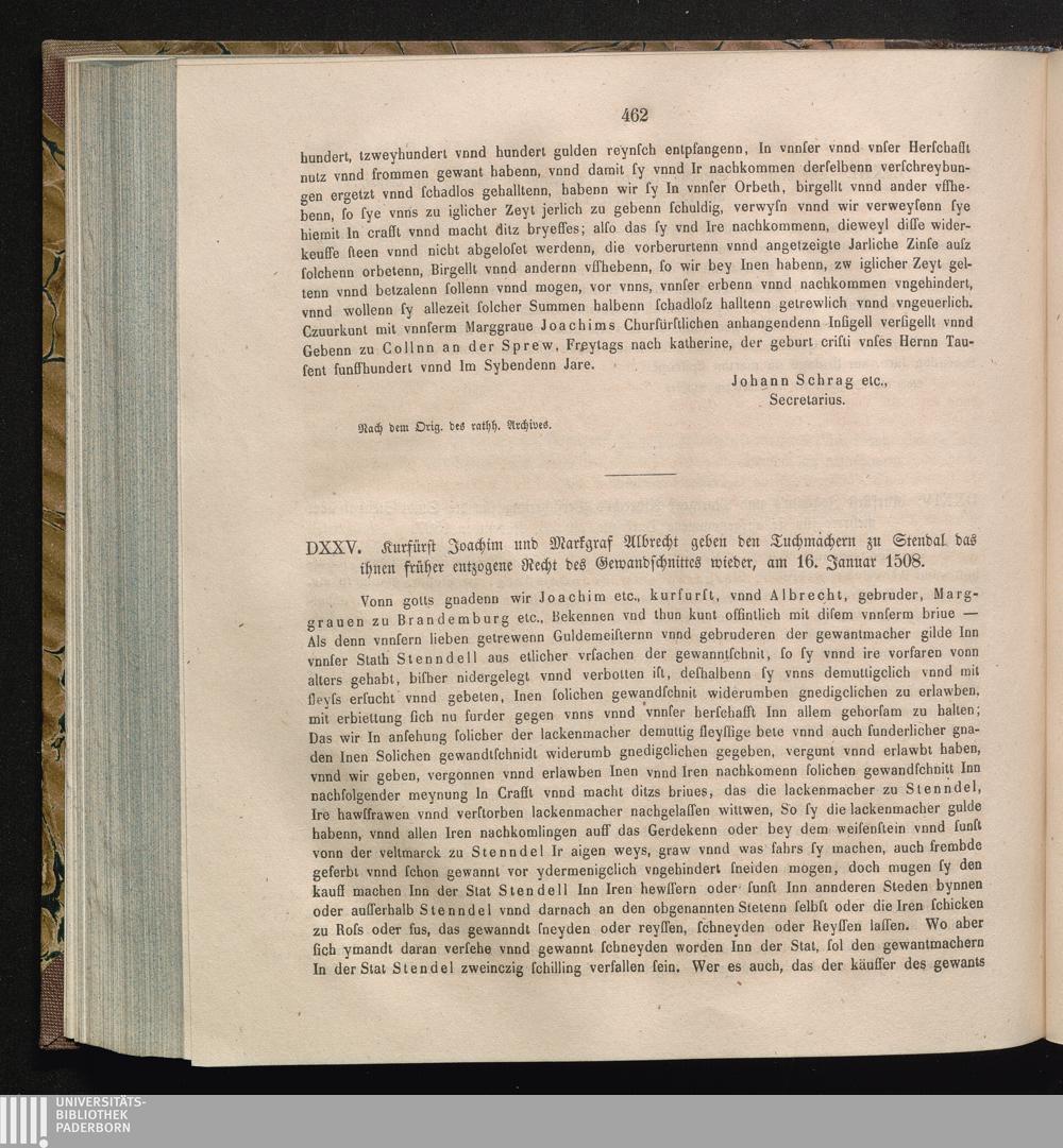 DXXV. Kurfürst Joachim und Markgraf Albrecht geben den Tuchmachern zu Stendal das[...]