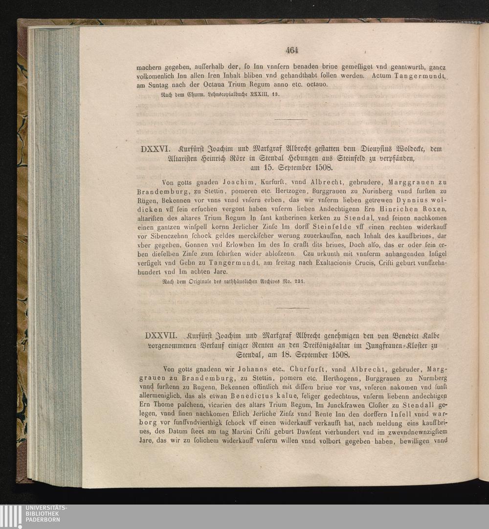 DXXVII. Kurfürst Joachim und Markgraf Albrecht genehmigen den von Benedict Kalbe[...]