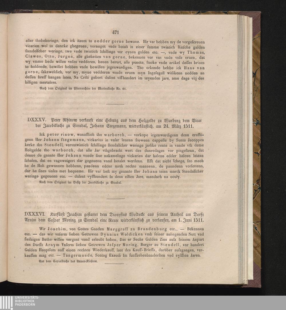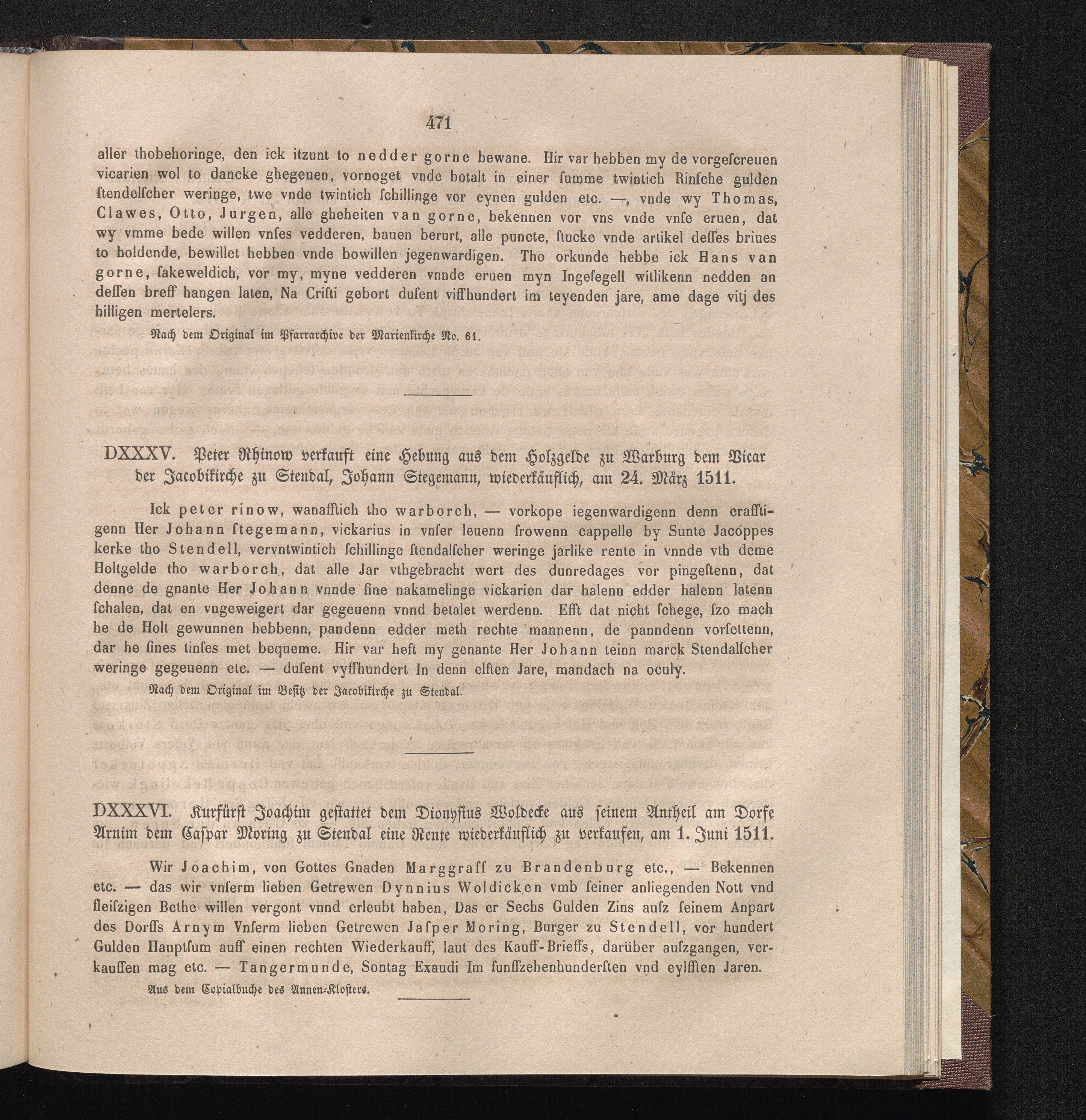 DXXXVI. Kurfürst Joachim gestattet dem Dionysius Woldeke aus seinem Antheil am Dorfe[...]
